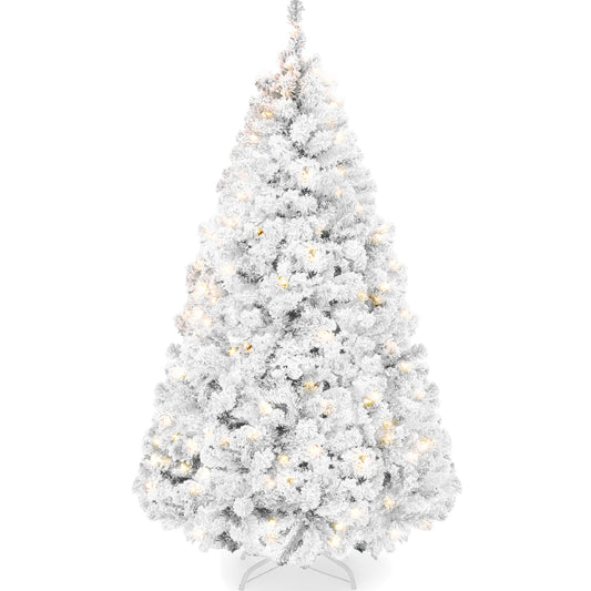 Pre-Lit Flocked Artificial Aspen Noble Fir Christmas Tree...