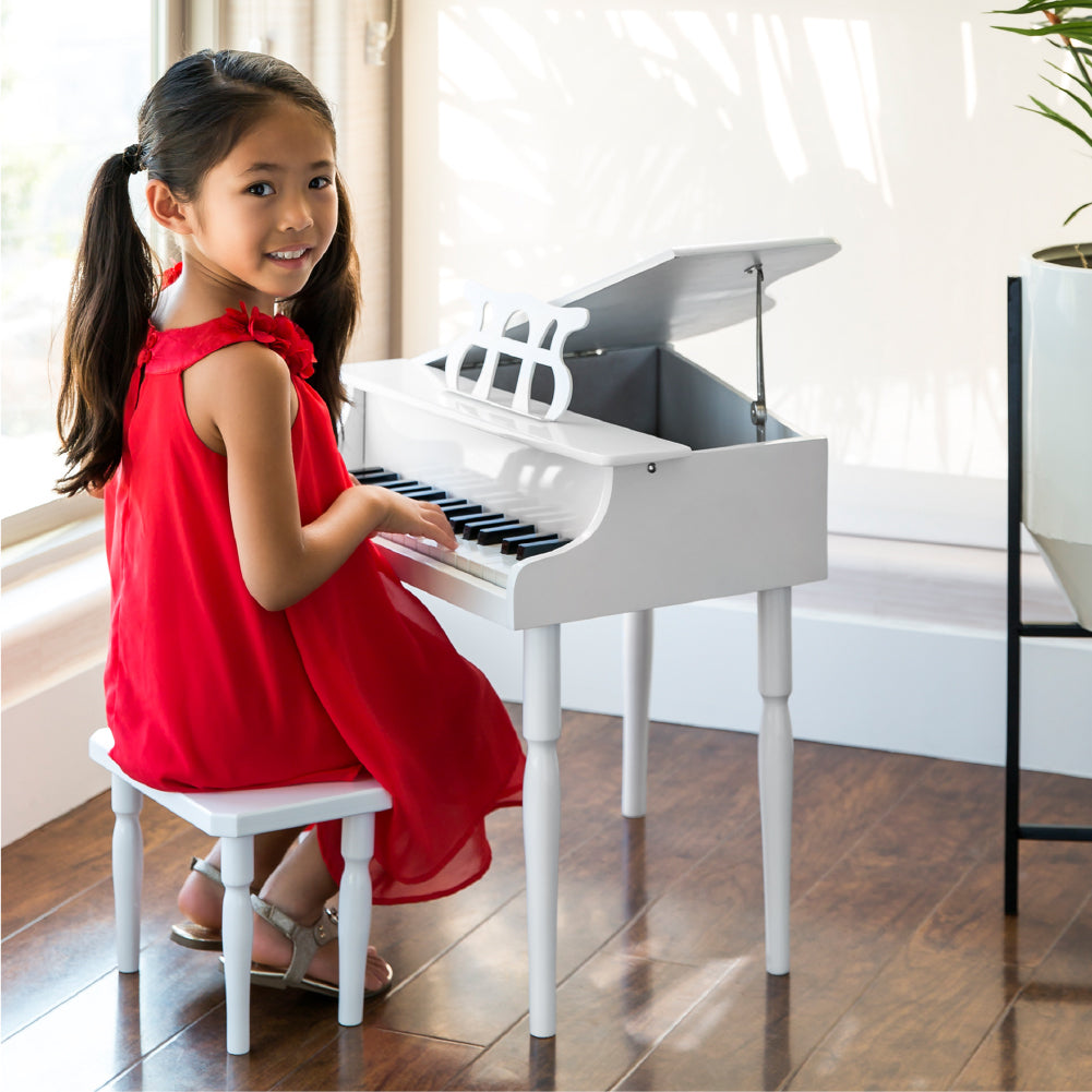 Kids Mini Wooden Grand Piano w/ Lid, Bench, Music Rack, S...