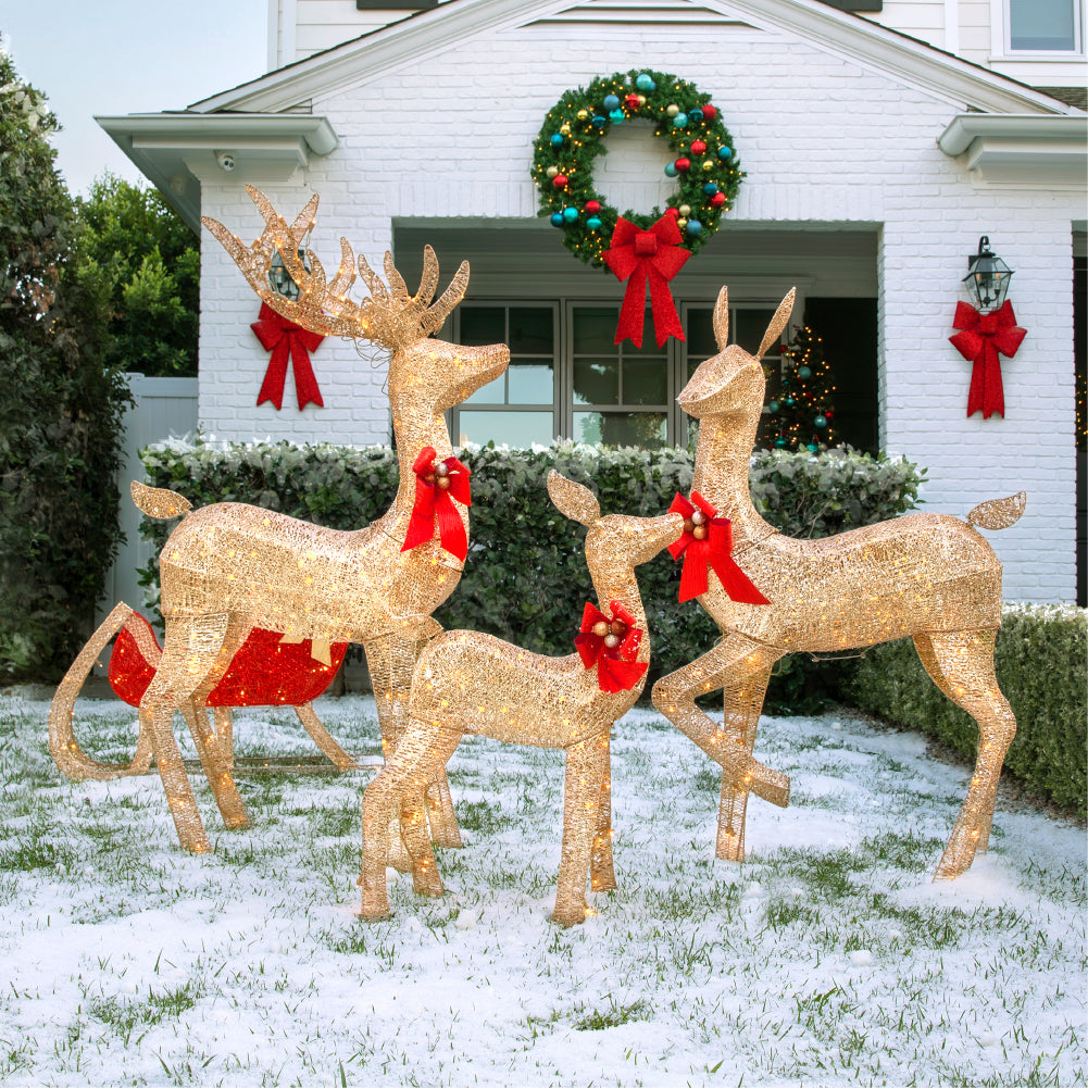 3-Piece Lighted Christmas Deer Set Outdoor Decor with 175...