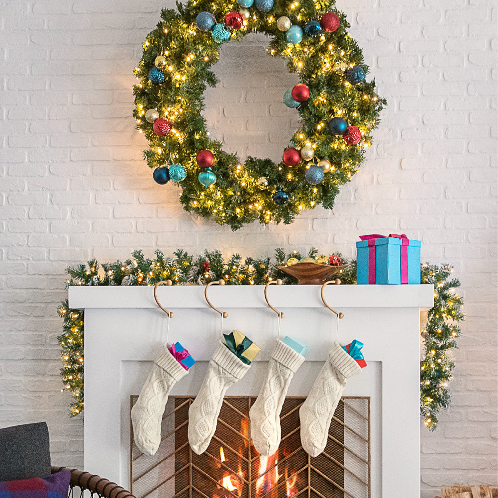 Pre-Lit Outdoor Christmas Wreath, LED Metal Holiday Decor...