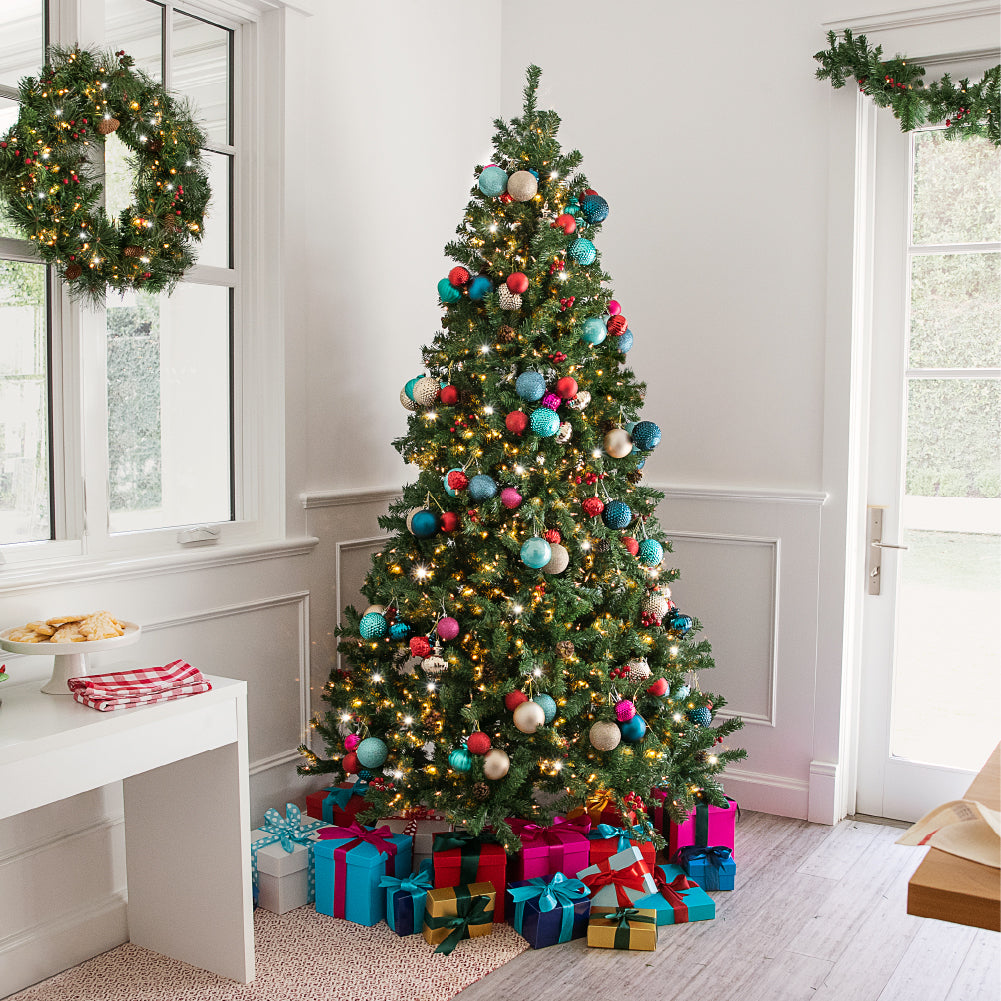 Pre-Lit Artificial Spruce Christmas Tree w/ Multicolored ...