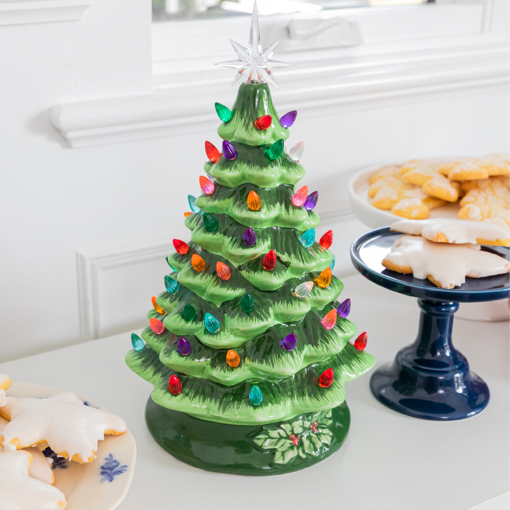Set of 3 Pre-Lit Ceramic Tabletop Christmas Trees