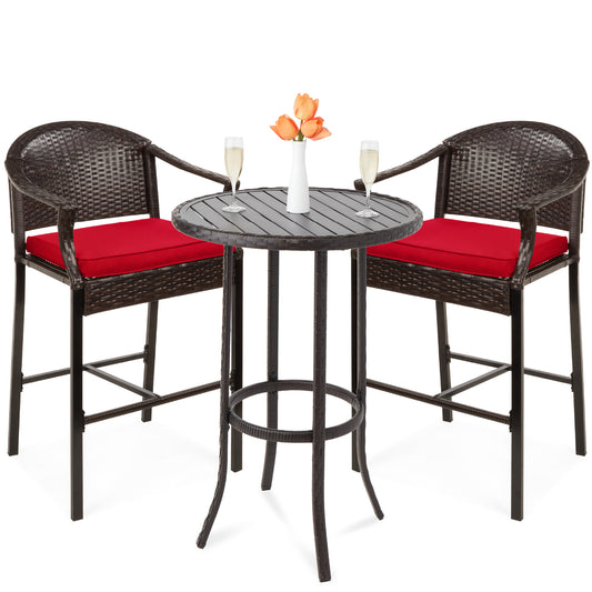 3-Piece Outdoor Bistro Wicker Table Bar Set w/ Bar Stools...