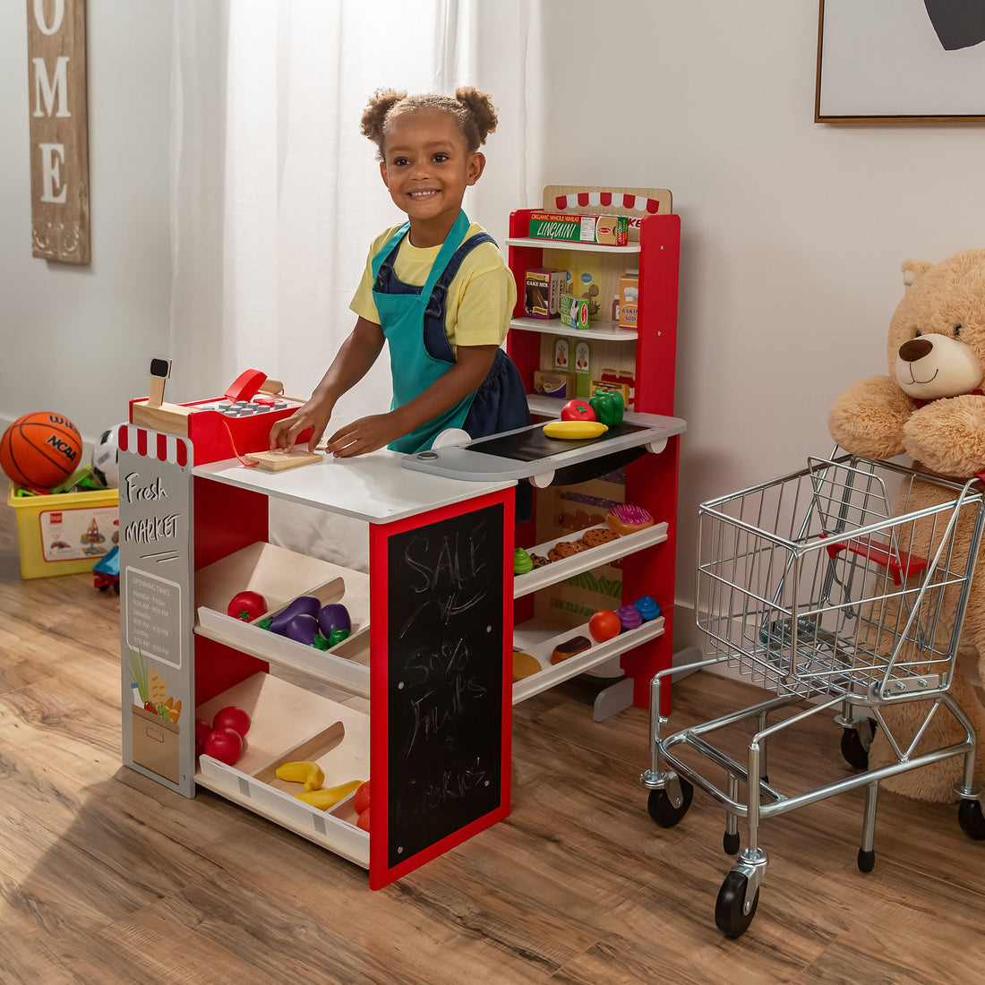Pretend Play Wooden Farmhouse Kitchen Set w/ Storage, 5 A...