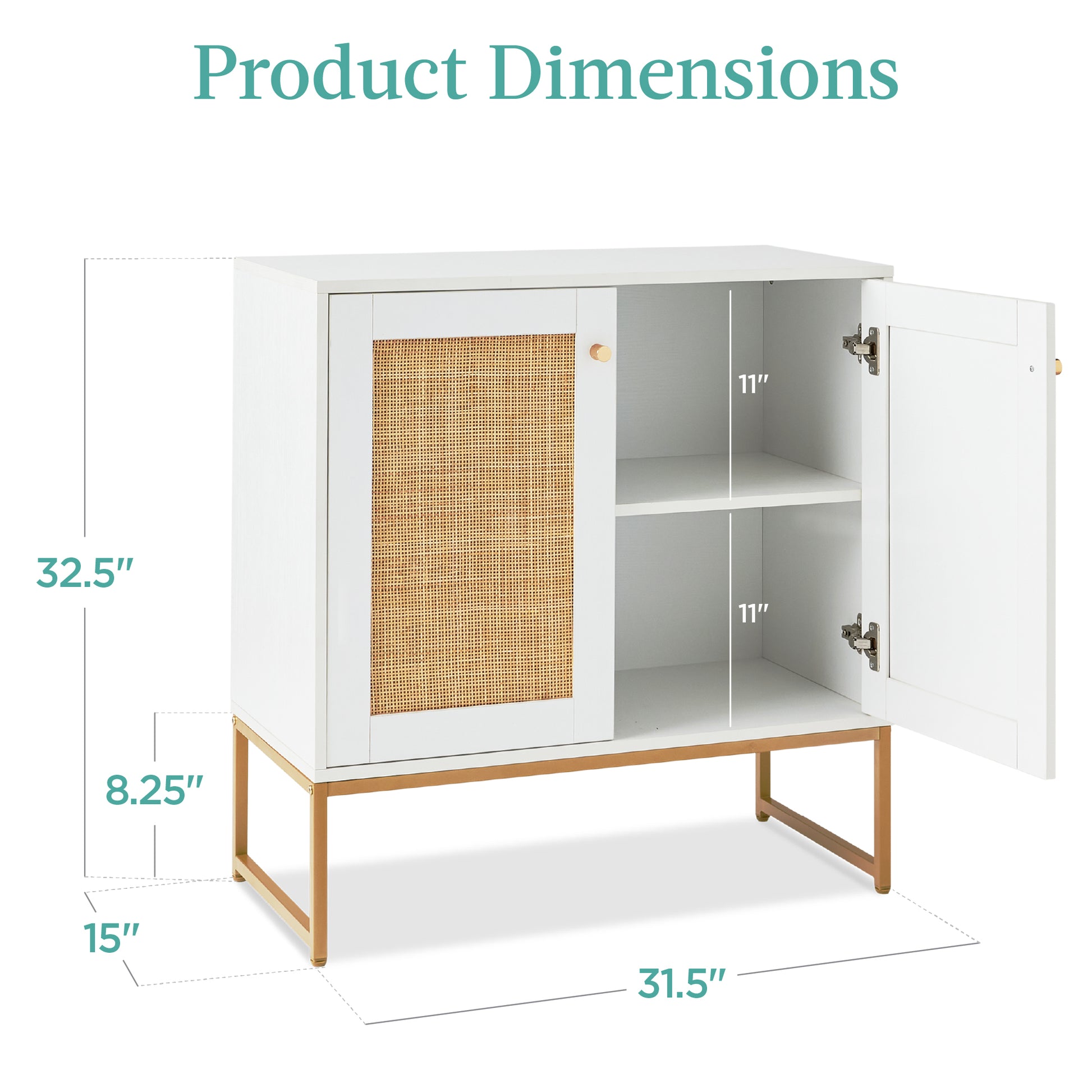 2-Door Rattan Storage Cabinet Accent Furniture for Living Room w/ Foot Pads