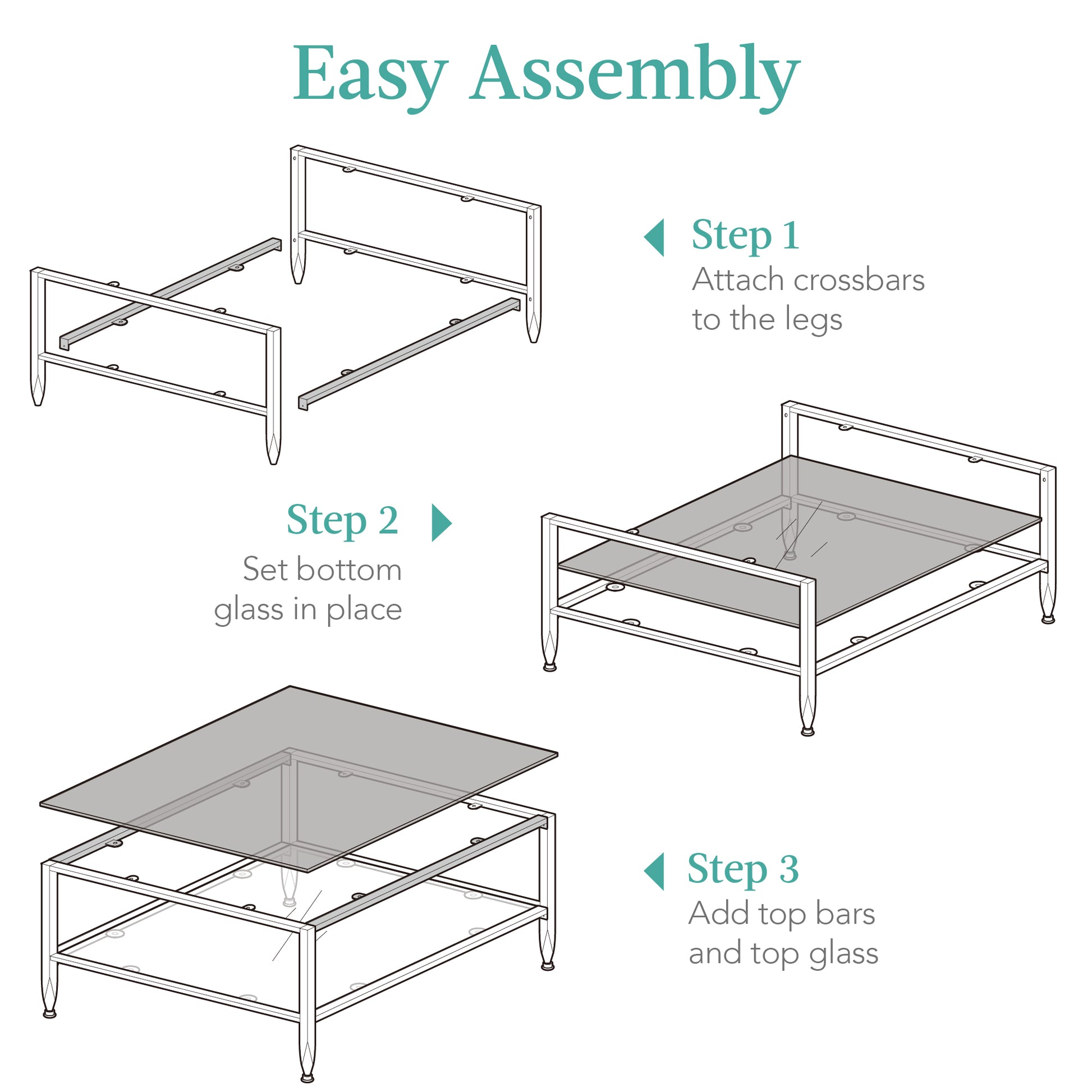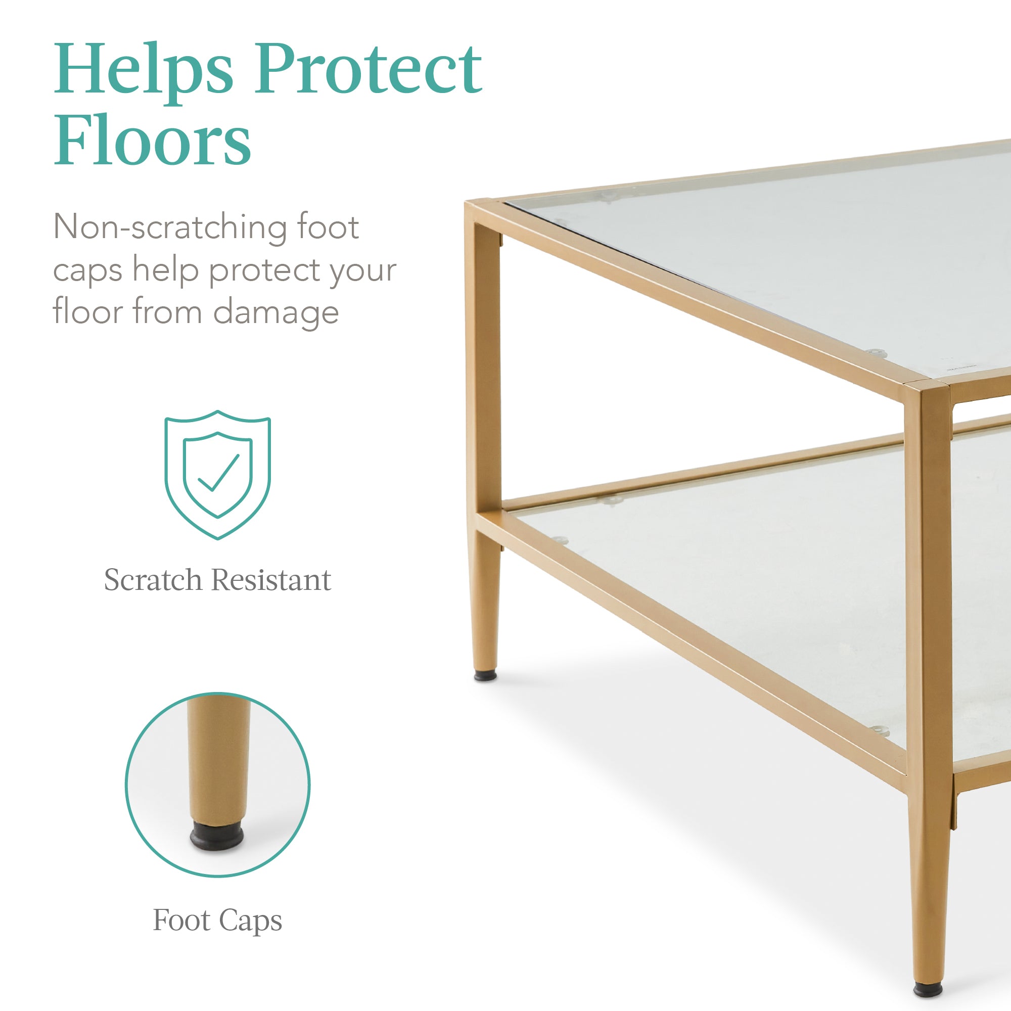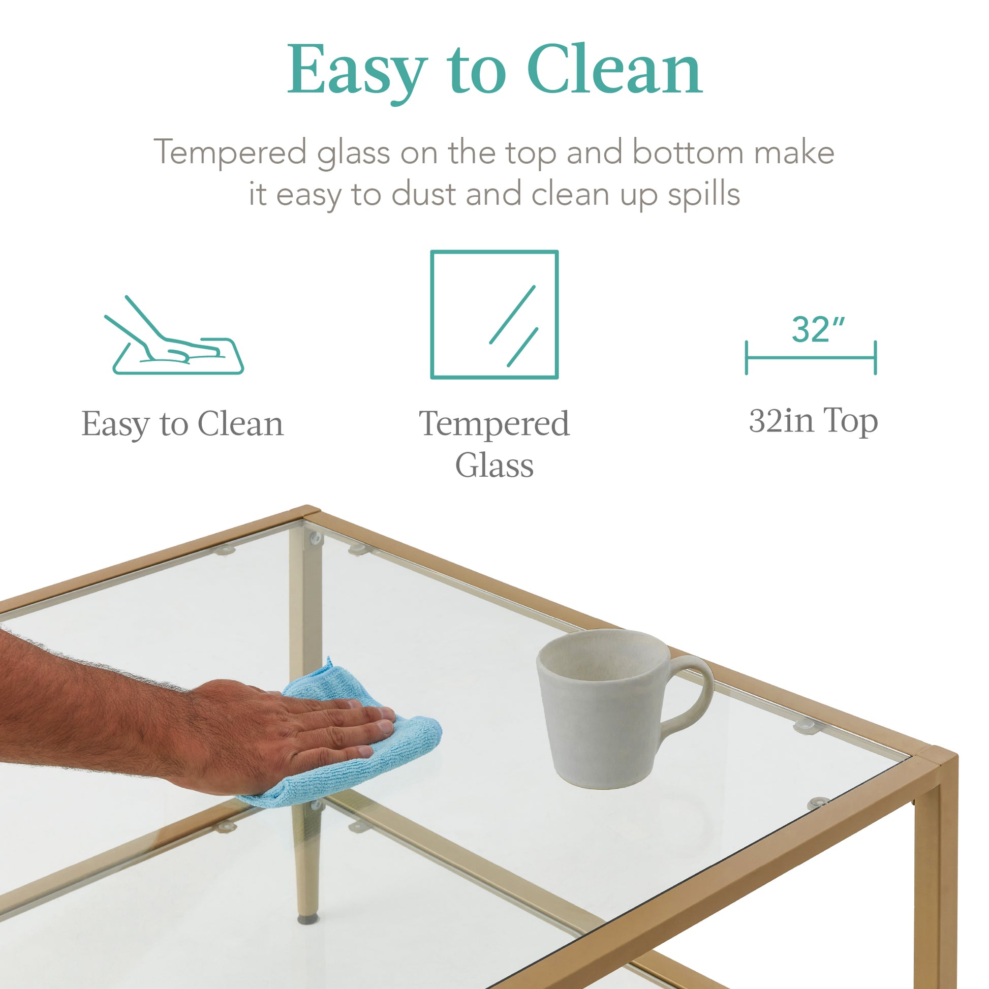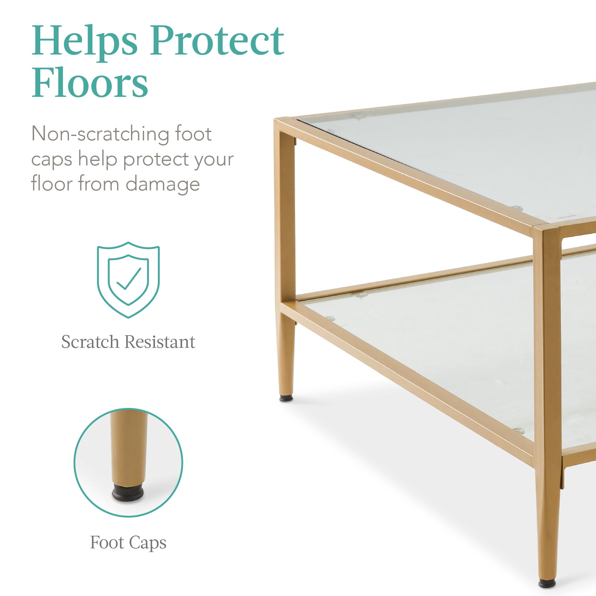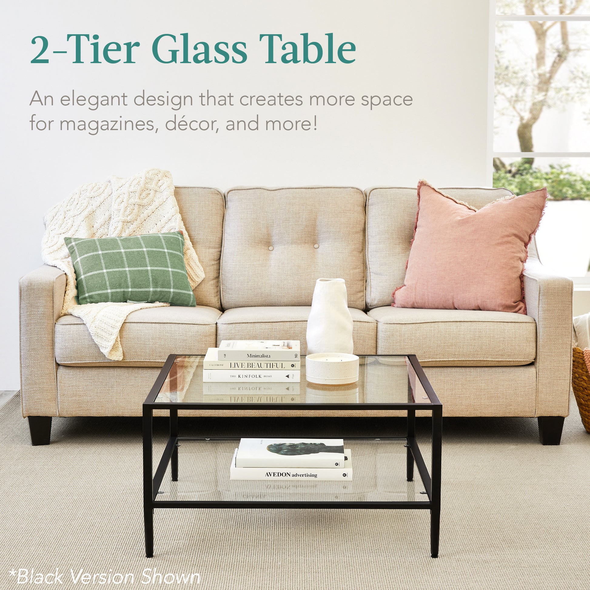 - ELEGANT 2-TIER GLASS DESIGN: This table's glass top and bottom shelves make it a modest yet elegant living room addition or a decorative centerpiece on which to place magazines, snacks, or beverages