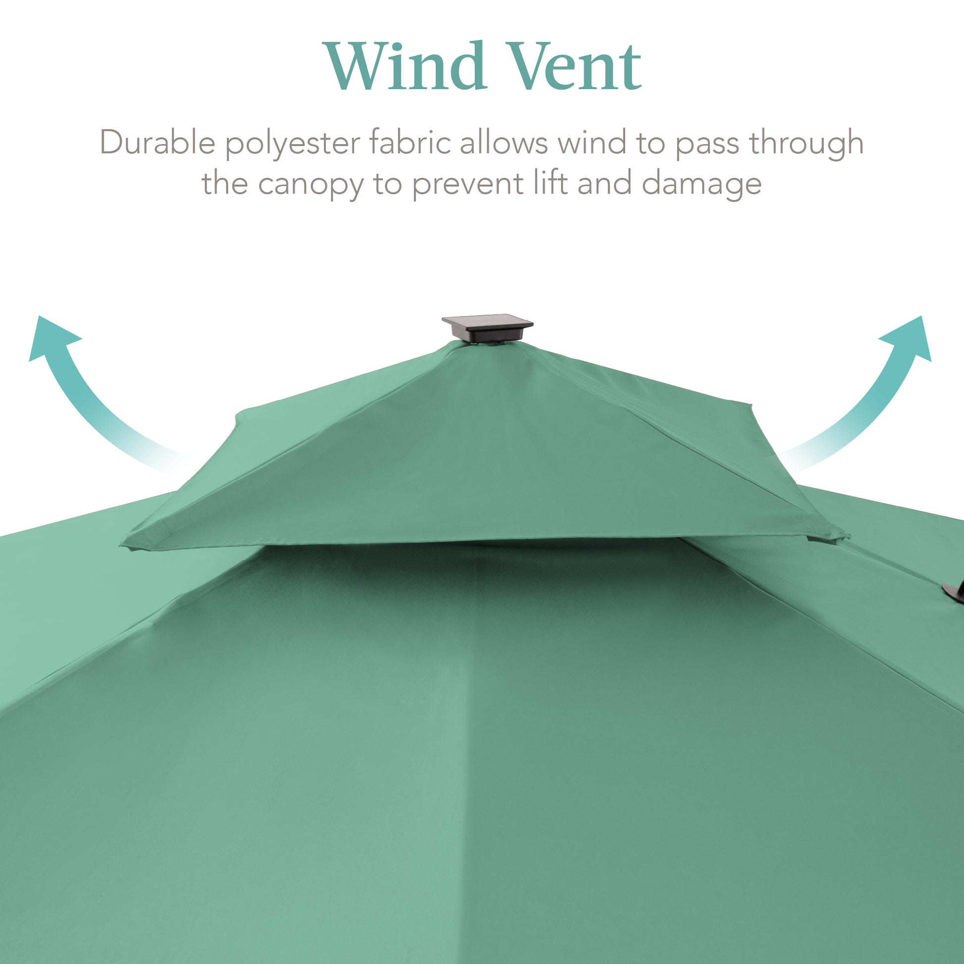 • WIND VENT: Durable polyester fabric resists damage from the elements while the vent promotes airflow, cooling your guests while adding stability