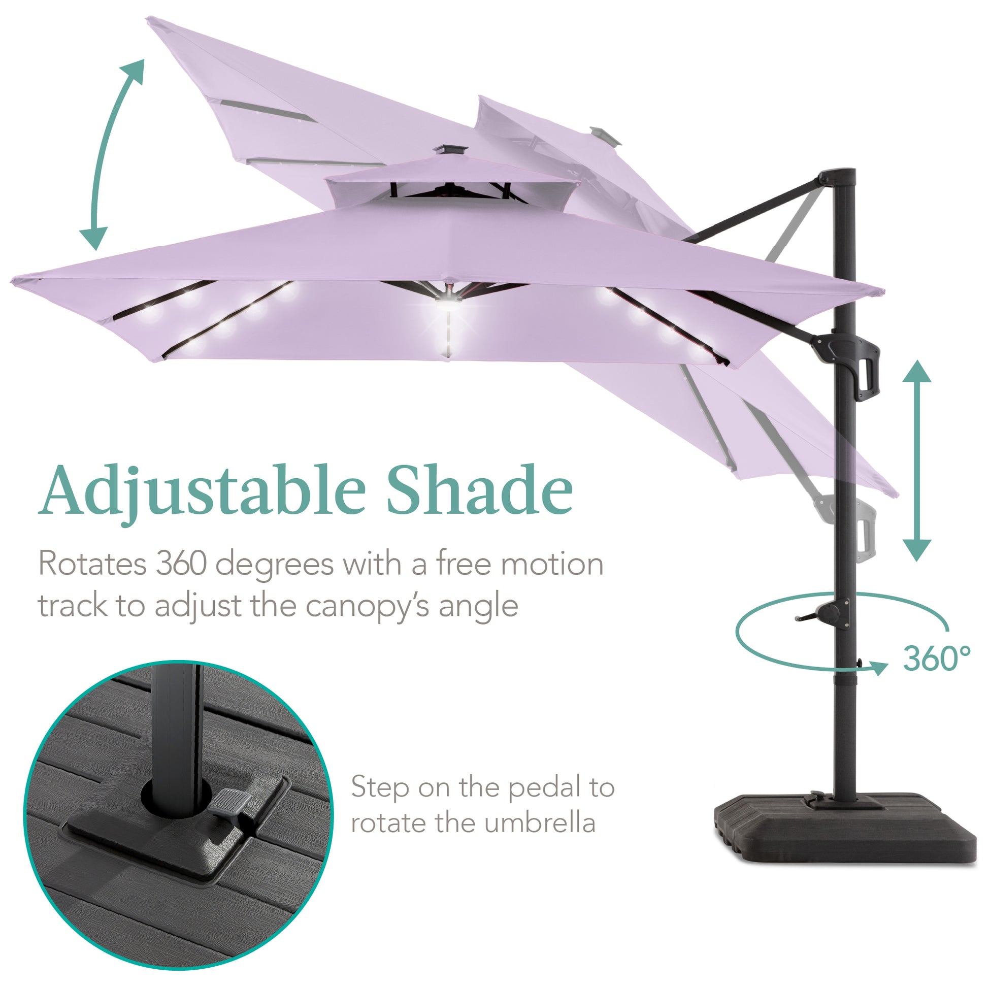2-Tier Square LED Cantilever Offset Umbrella w/ 360 Rotation, Base - 10x10ft