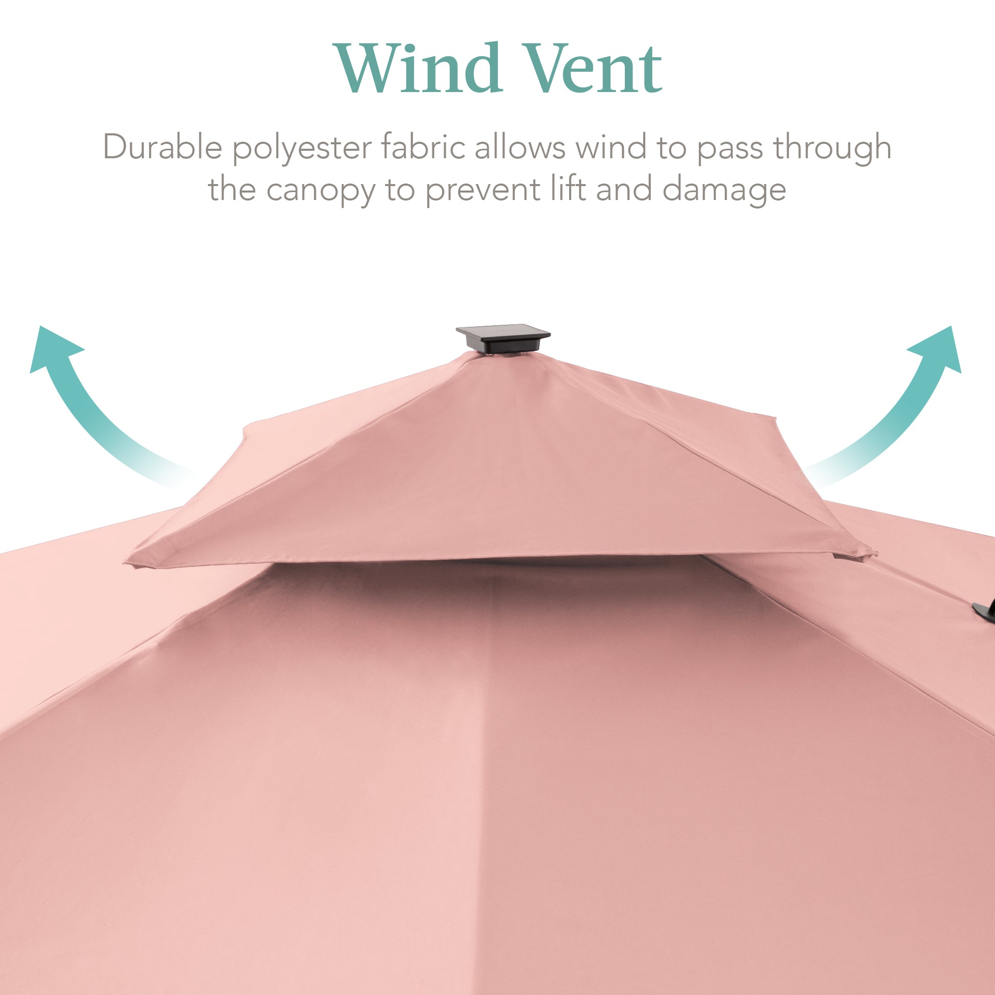 - WIND VENT: Durable polyester fabric resists damage from the elements while the vent promotes airflow, cooling your guests while adding stability