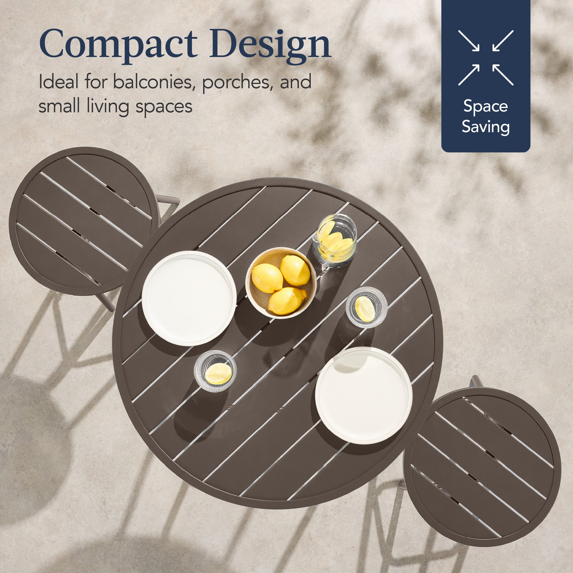 • IDEAL FOR OPEN SPACES: This 3-piece set is great for open spaces and is the ideal accent piece to enjoy your outdoor space with ample table space and easy set up