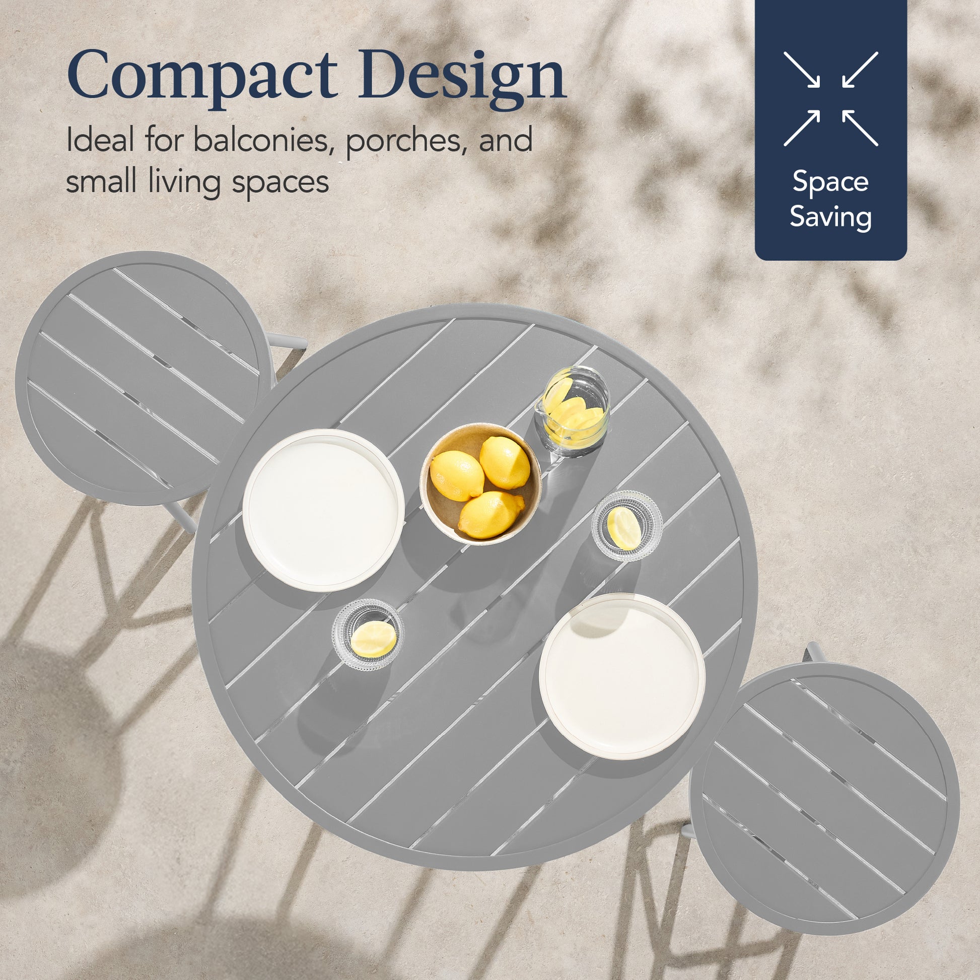 • IDEAL FOR OPEN SPACES: This 3-piece set is great for open spaces and is the ideal accent piece to enjoy your outdoor space with ample table space and easy set up