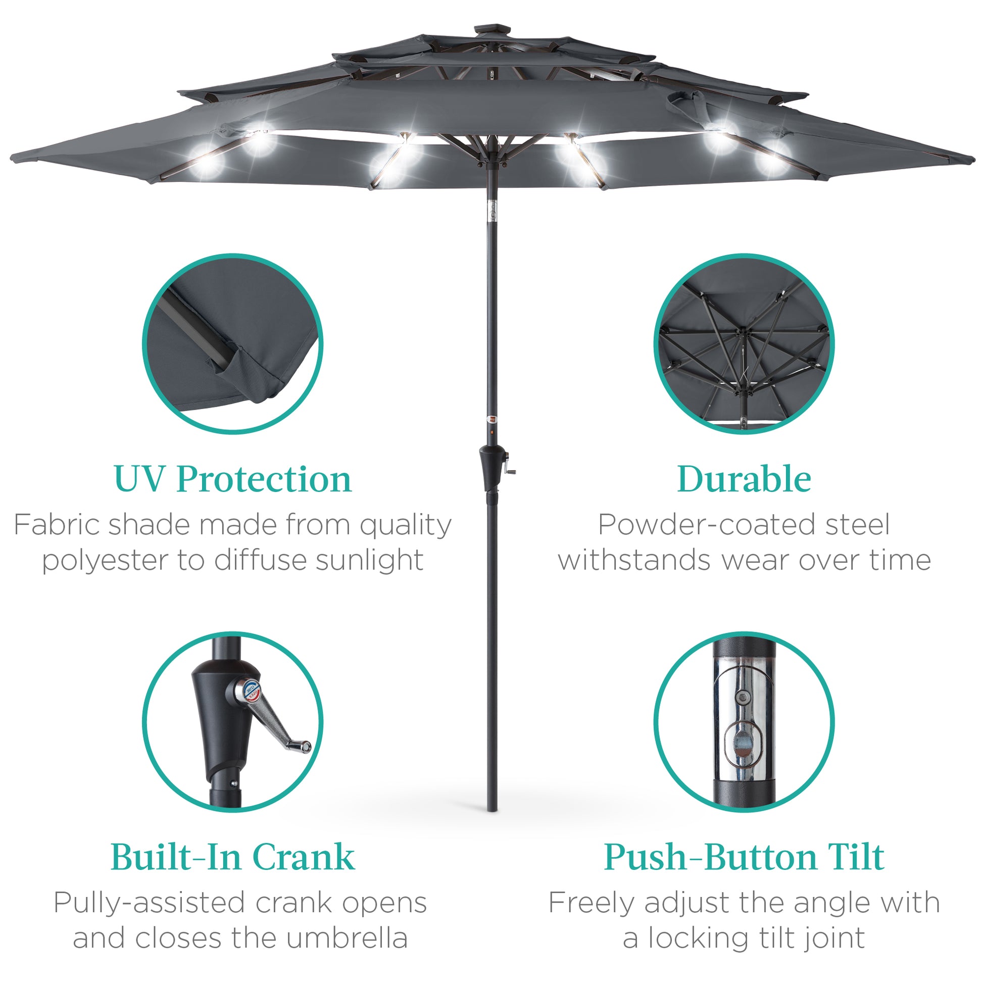 3-Tier Solar Patio Umbrella w/ LED Lights, Tilt Adjustment, Crank - 10ft