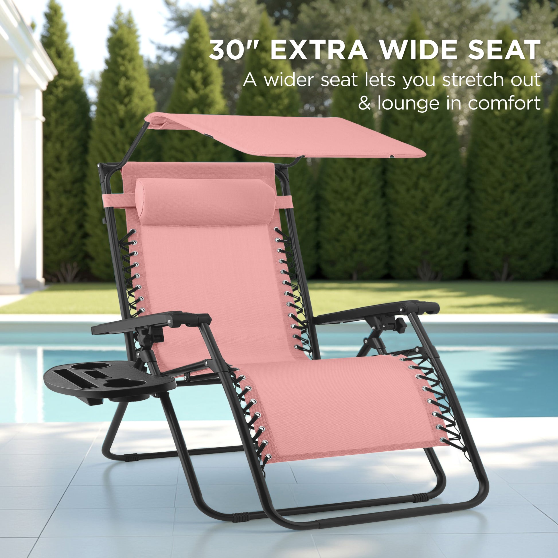 30" Wide Folding Zero Gravity Patio Lounge Chair w/Adjustable Canopy Shade