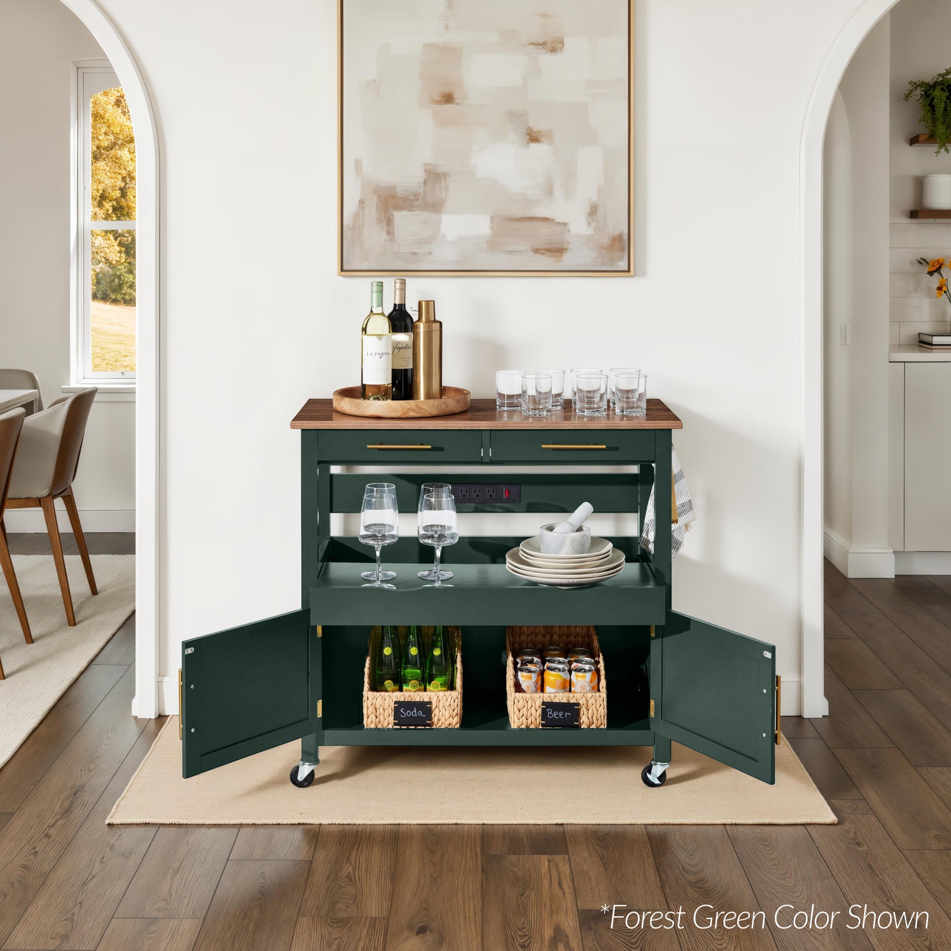 36in Large Rolling Kitchen Island Cart, 2-Door Cabinet, Outlet, & Wheels