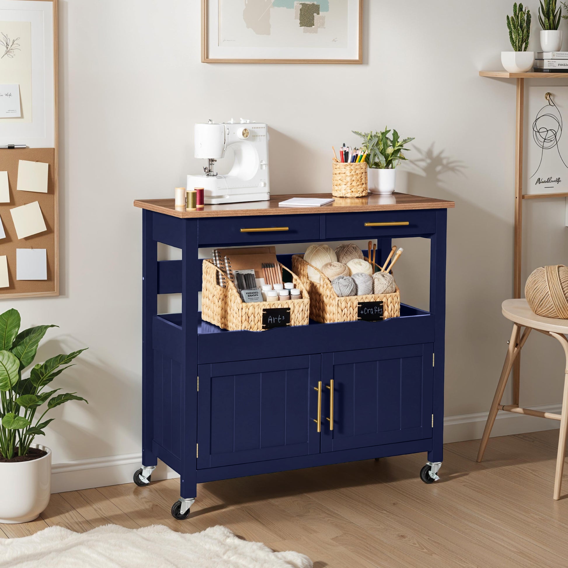 • 2 DRAWERS & 2-DOOR CABINET STORAGE: Convenient storage drawers for utensils, linens, or tools, plus a spacious 2-door cabinet to organize pantry items, small appliances, or craft supplies
