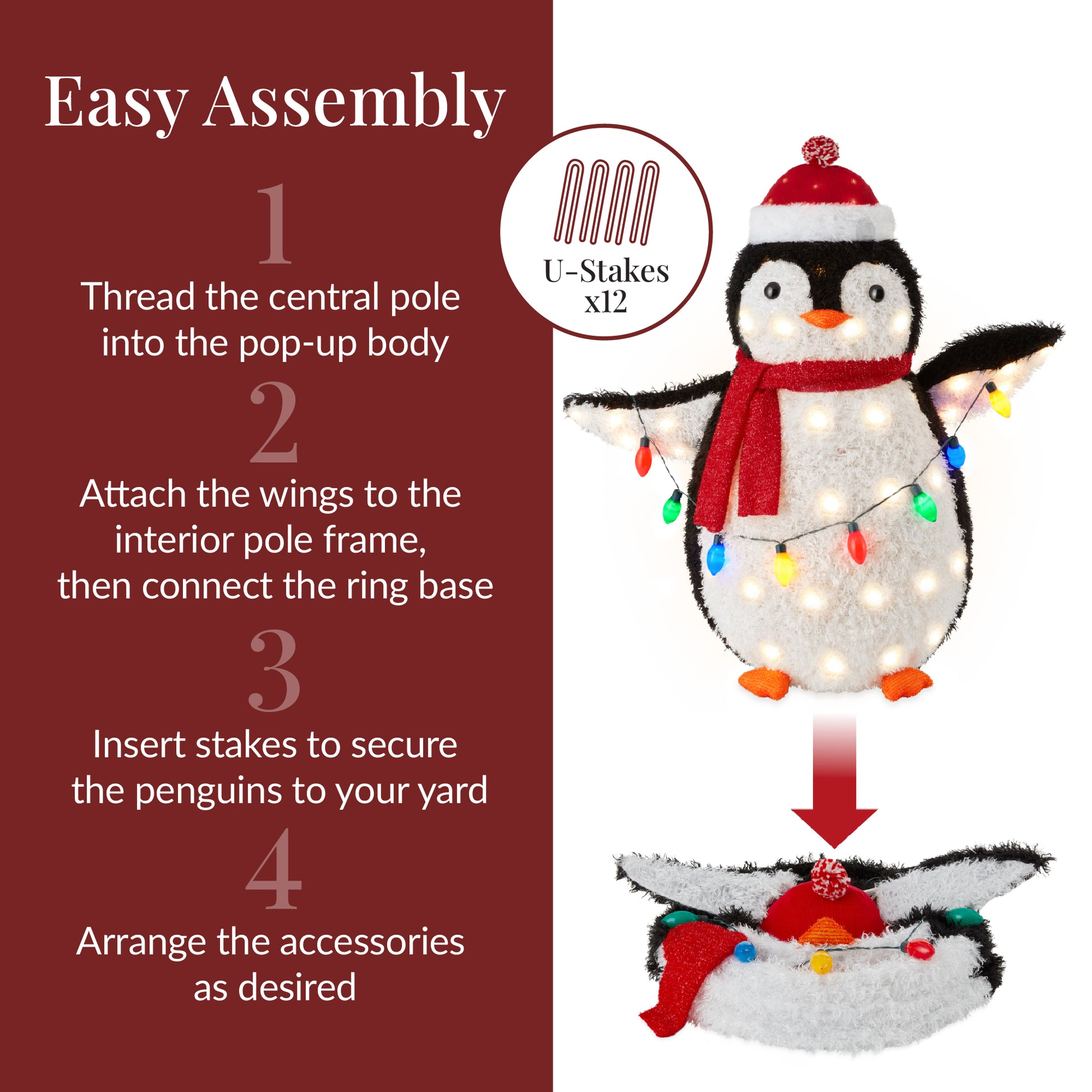 4pc Lighted Pop-Up Penguin Family Christmas Decoration w/ 300 Lights - 3ft