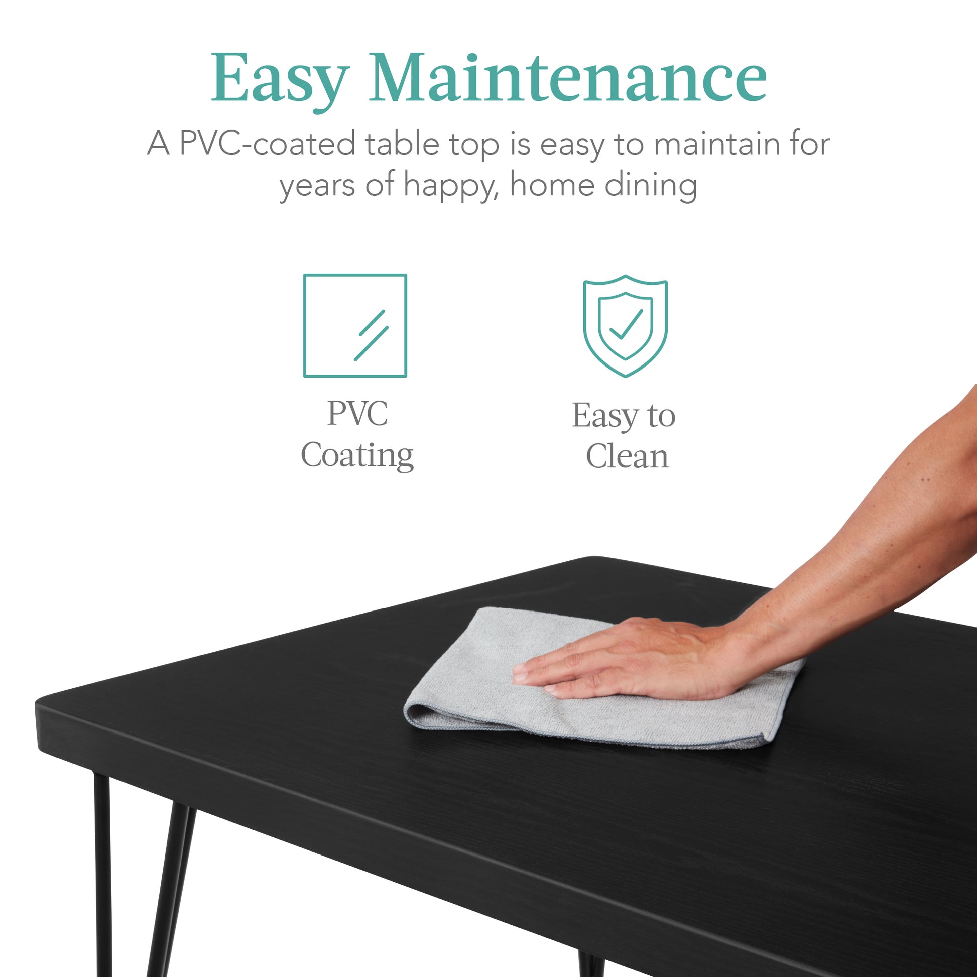 • EASY TO CLEAN: A metal frame with wood seats and table top are easy to wipe clean when there are spills or messes