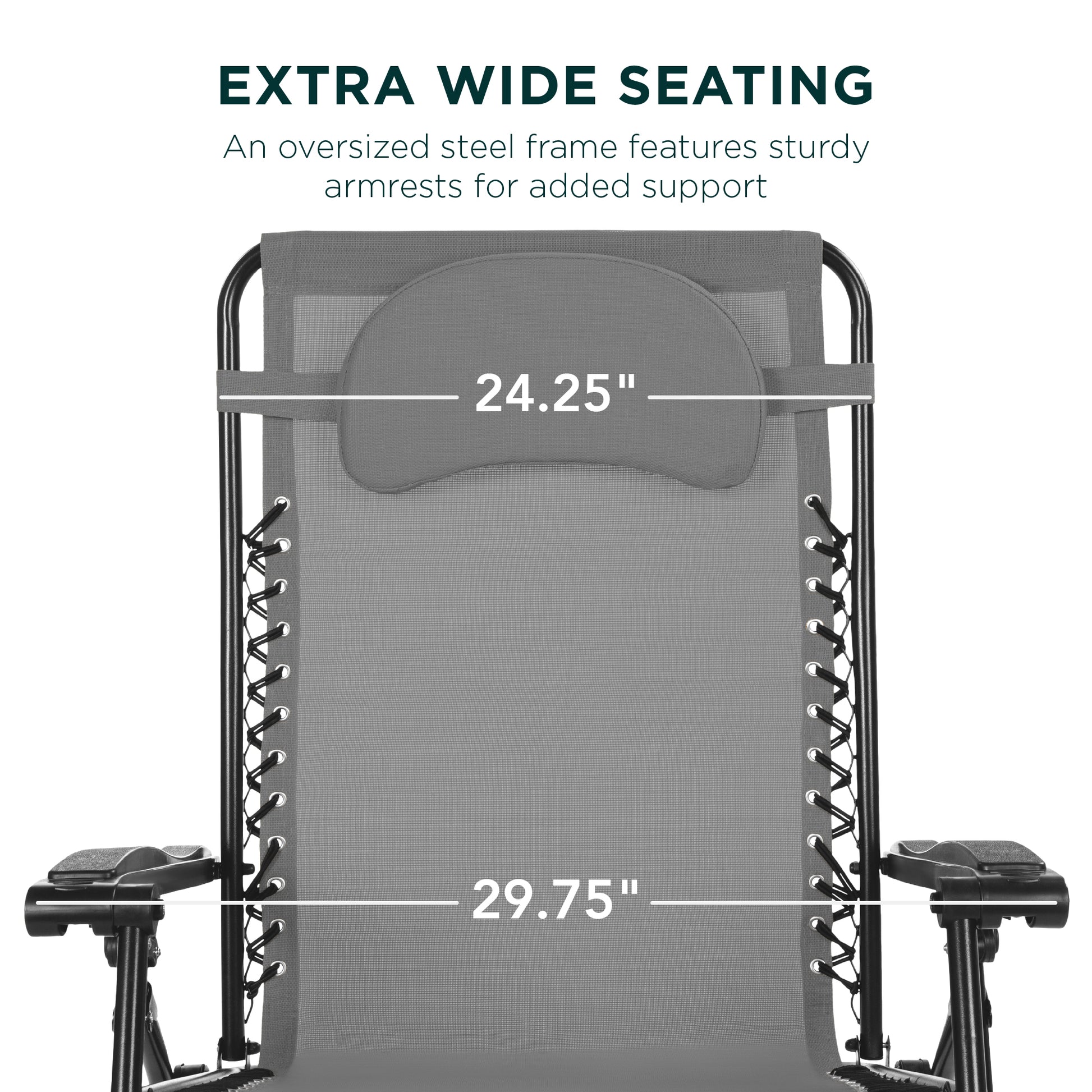Oversized Reclining Zero Gravity Chair Lounger w/ Cup Holder, Pillow