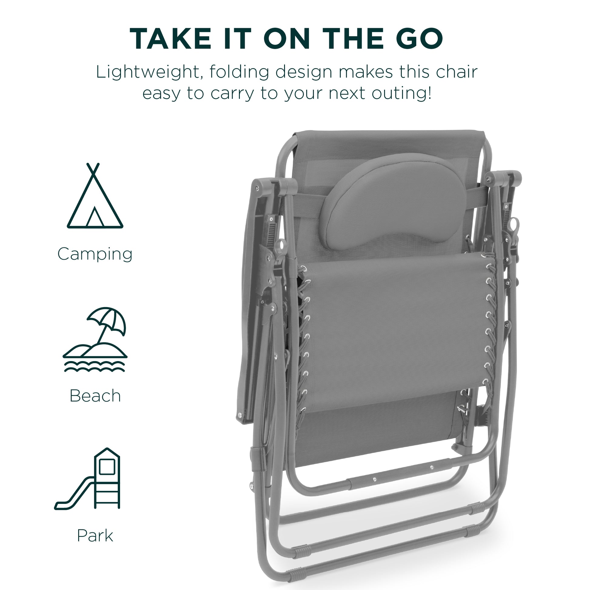 • TAKE IT ON THE GO: A lightweight, folding design makes this chair easy to enjoy at home, the beach, the park, or your next tailgate