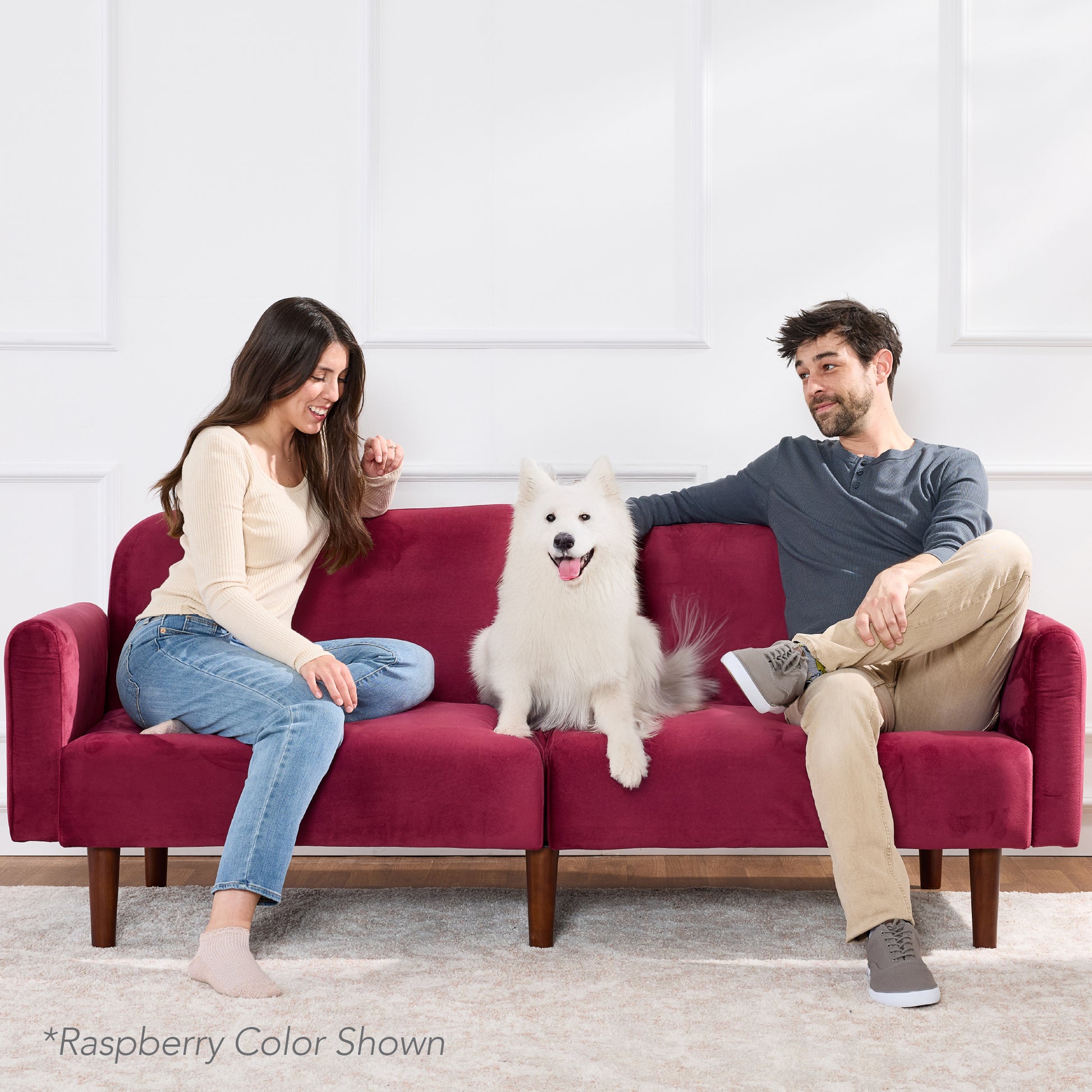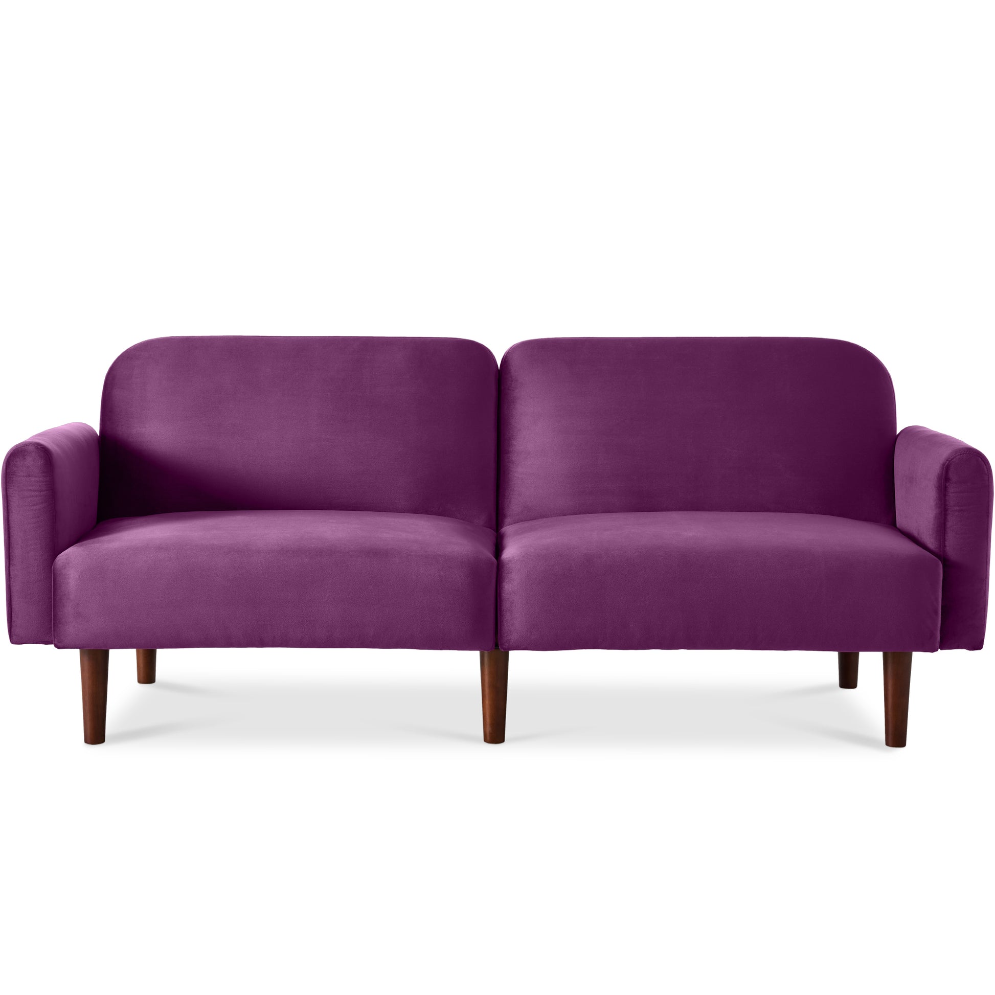 Curved Convertible Futon, Velvet Fabric Split-Back Sleeper Bed