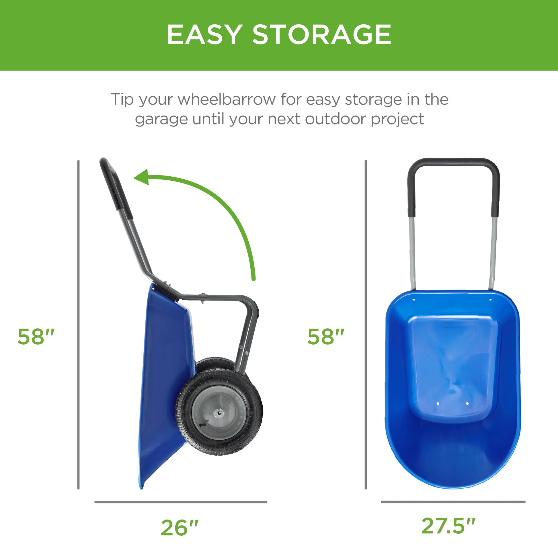 - EASY STORAGE: A compact profile combined with easy tipping action allows you to seamlessly store this wheelbarrow upright in your garage or garden shed
