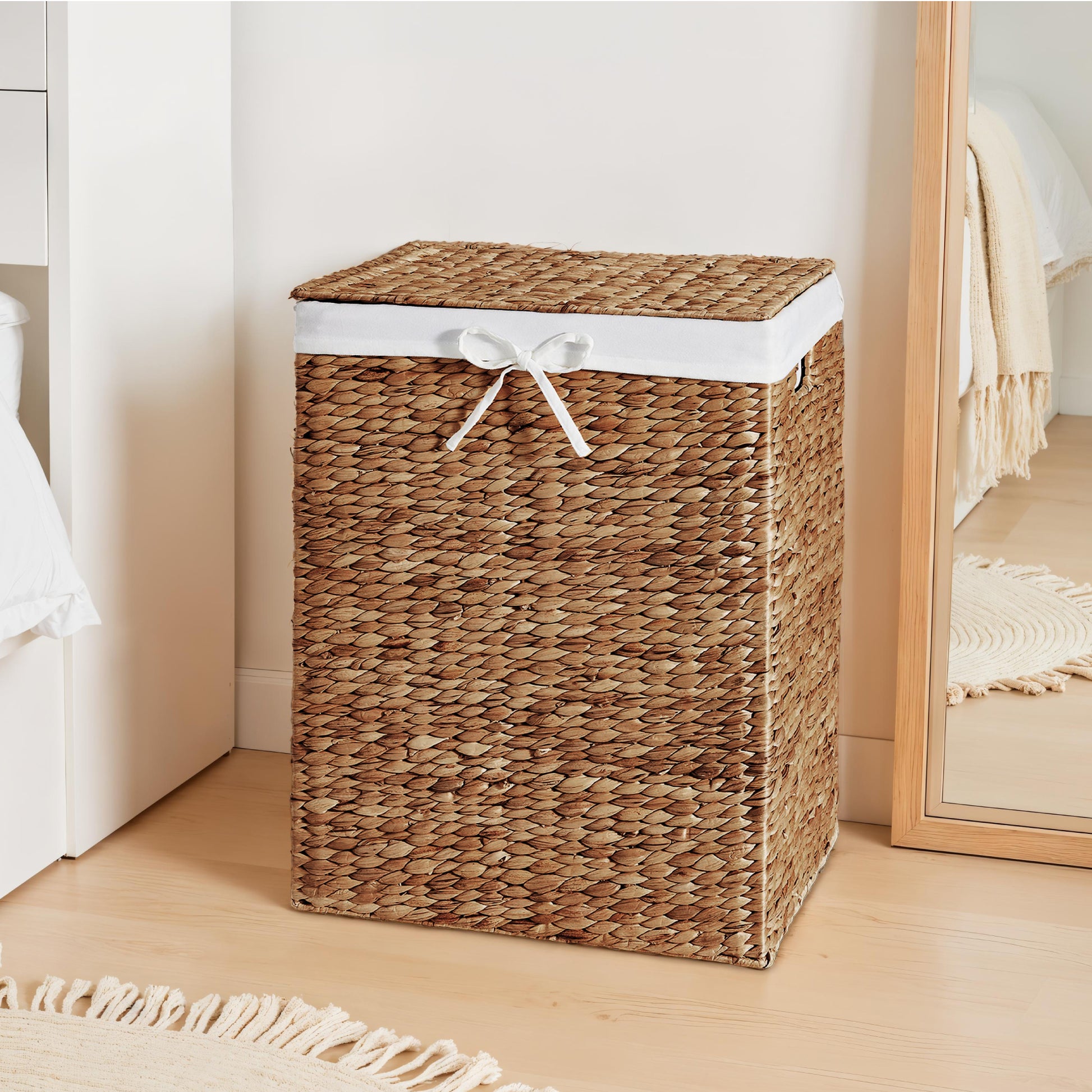 Handwoven Laundry Hamper Basket w/ Lid, Removable Liner & Built-in Handles