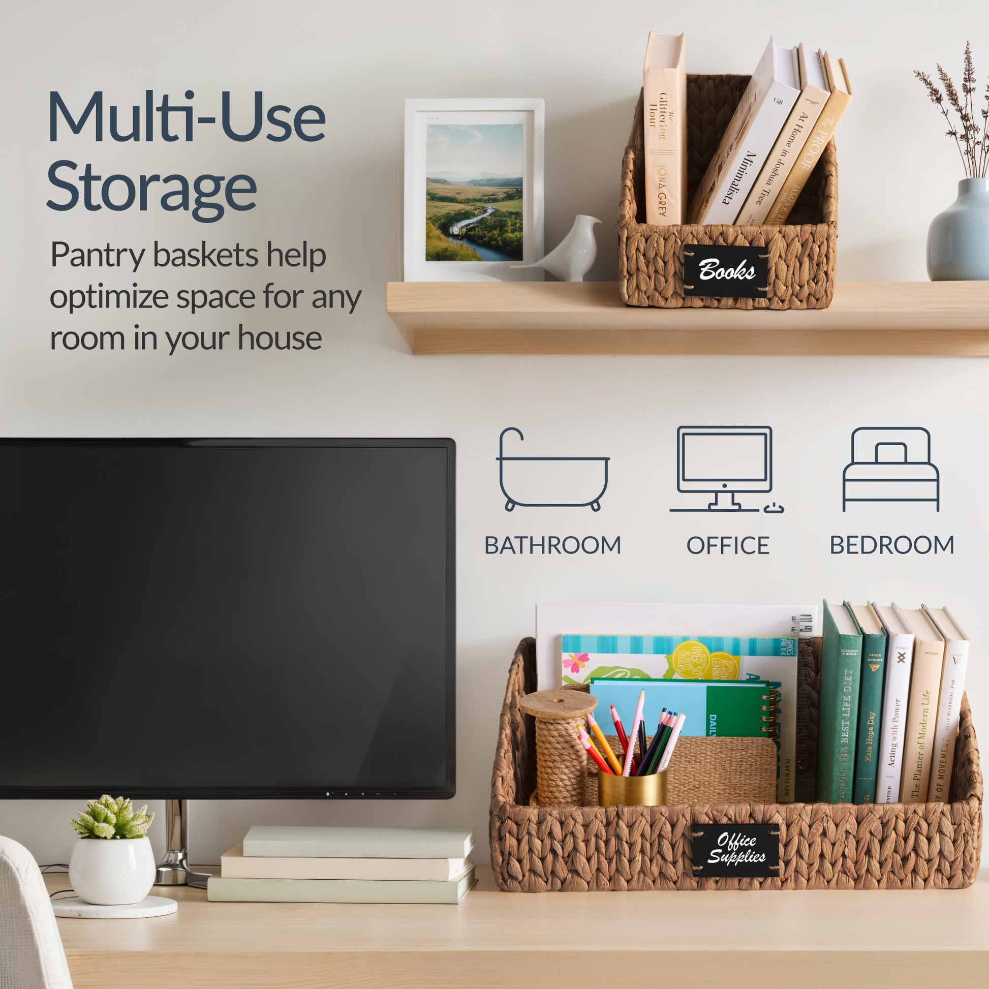 - STURDY BUILD + CUSTOMIZABLE LABELS: Wire-reinforced frames maintain their shape and support up to 11 lbs per basket and comes with reusable chalkboard labels and a marker to easily update categories as your storage needs evolve