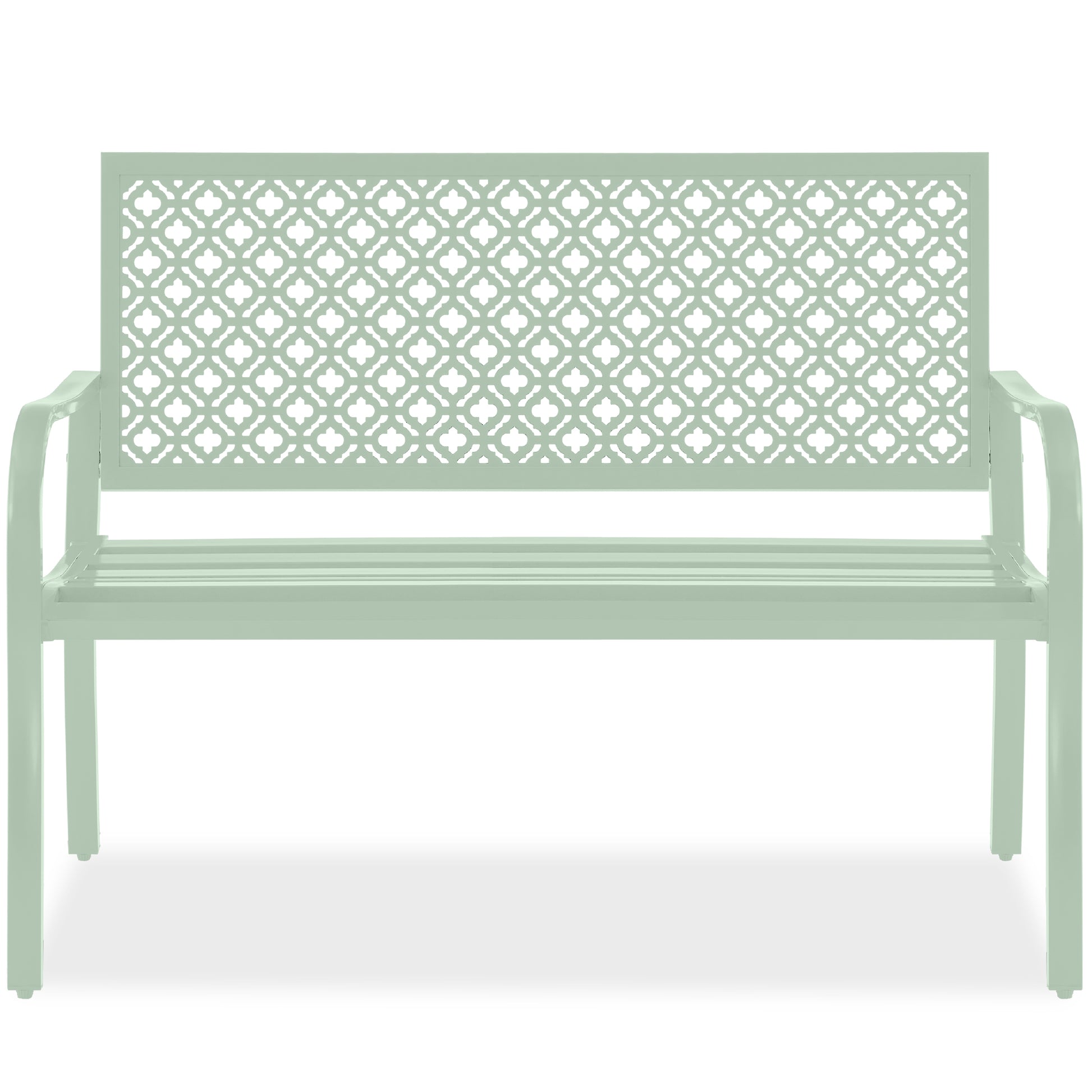 Indoor Outdoor Steel Bench w/ Geometric Backrest, Foot Levelers