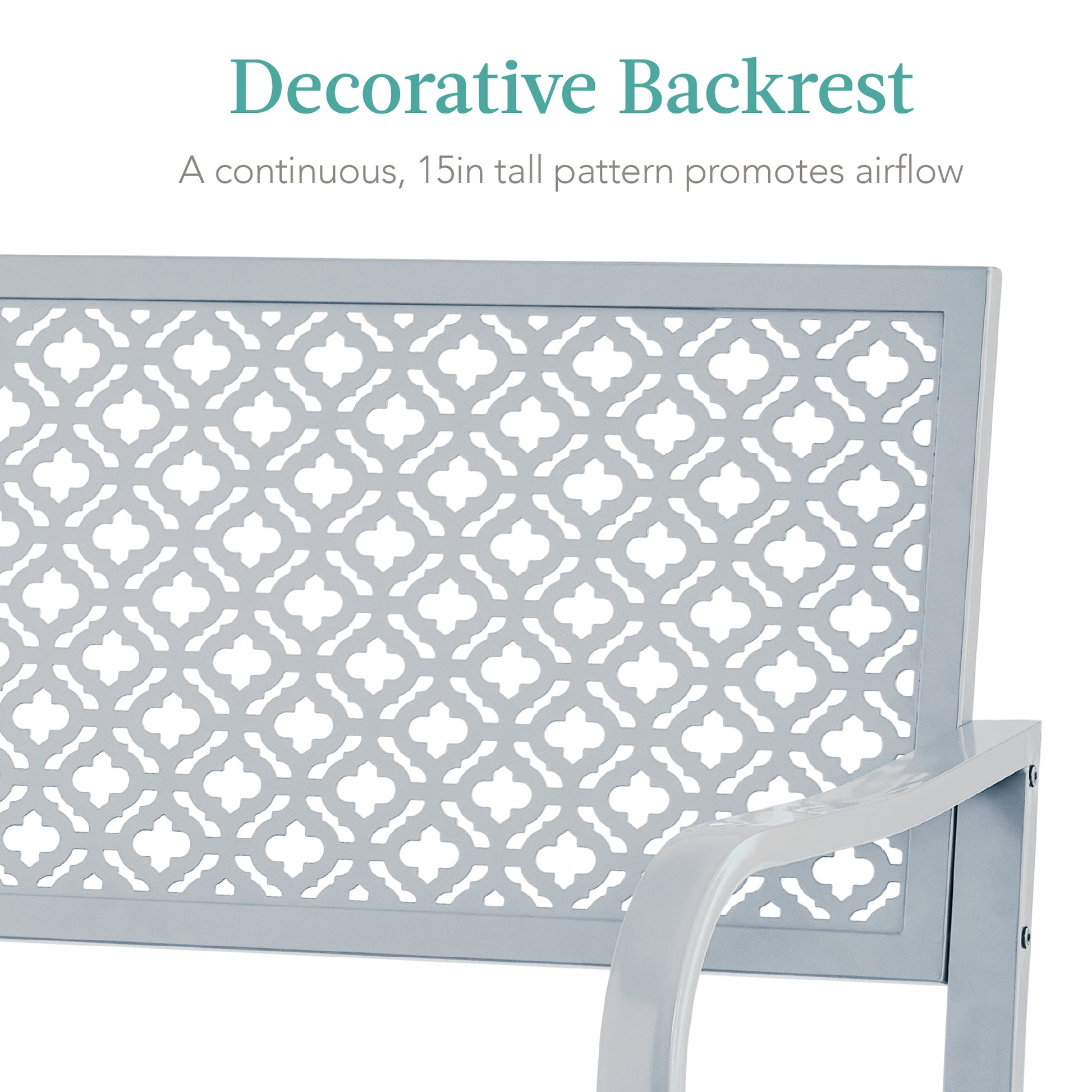 Indoor Outdoor Steel Bench w/ Geometric Backrest, Foot Levelers