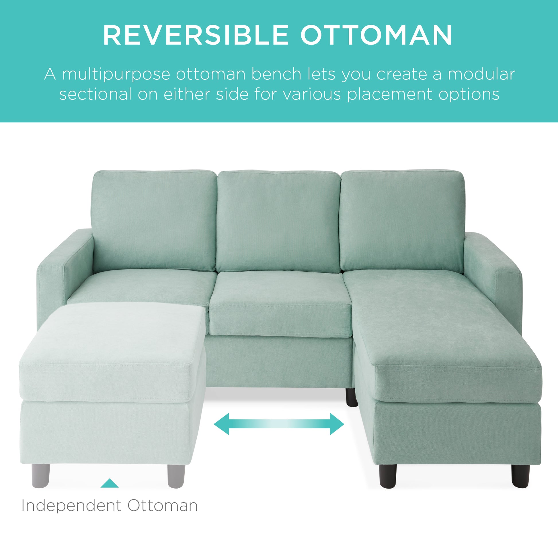 - REVERSIBLE OTTOMAN: This sofa turns modular with an independent matching ottoman that can conveniently be placed on either side for a versatile chaise lounger design