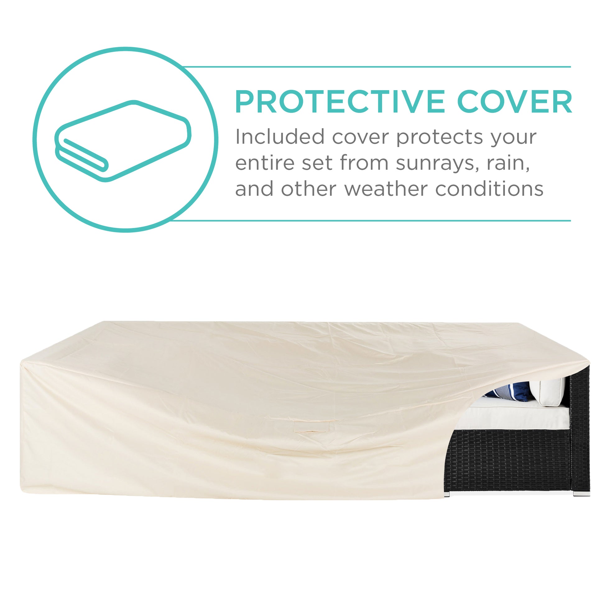 7-Piece Modular Wicker Sectional Conversation Set w/ 2 Pillows, Cover