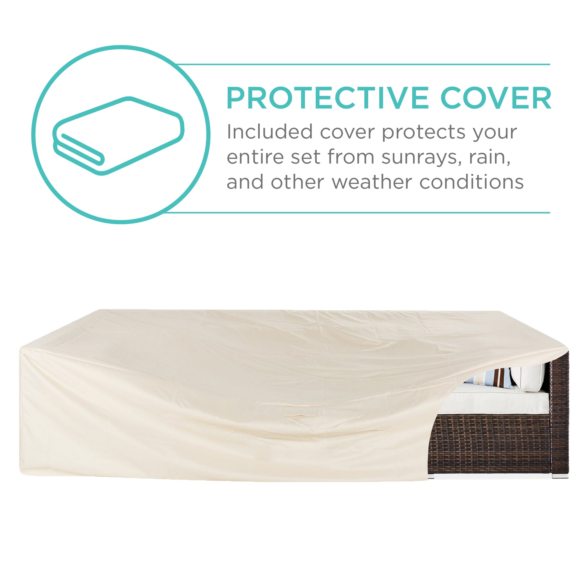7-Piece Modular Wicker Sectional Conversation Set w/ 2 Pillows, Cover
