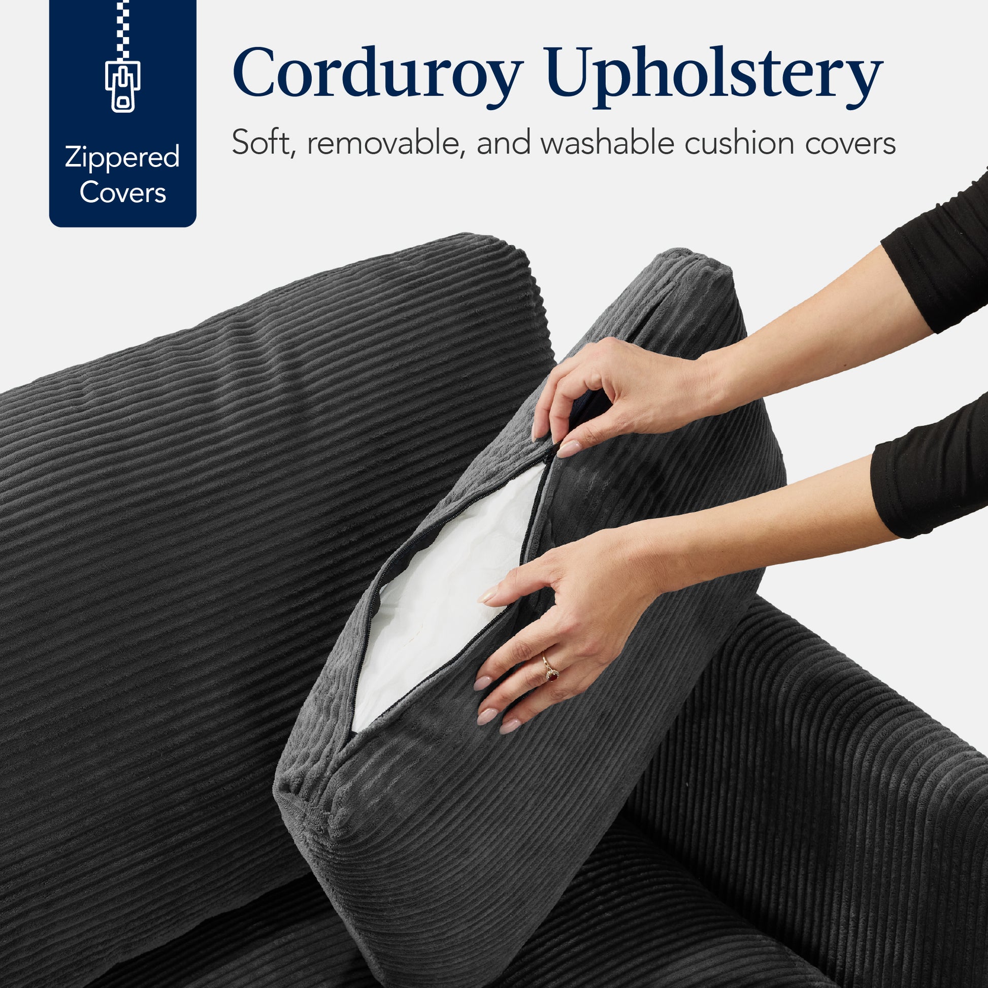 • QUALITY CRAFTMANSHIP: Crafted with a solid wood frame and legs, and soft and cozy corduroy material, this couch's elevated materials enhance its quality and texture while providing an inviting feeling and a contemporary style