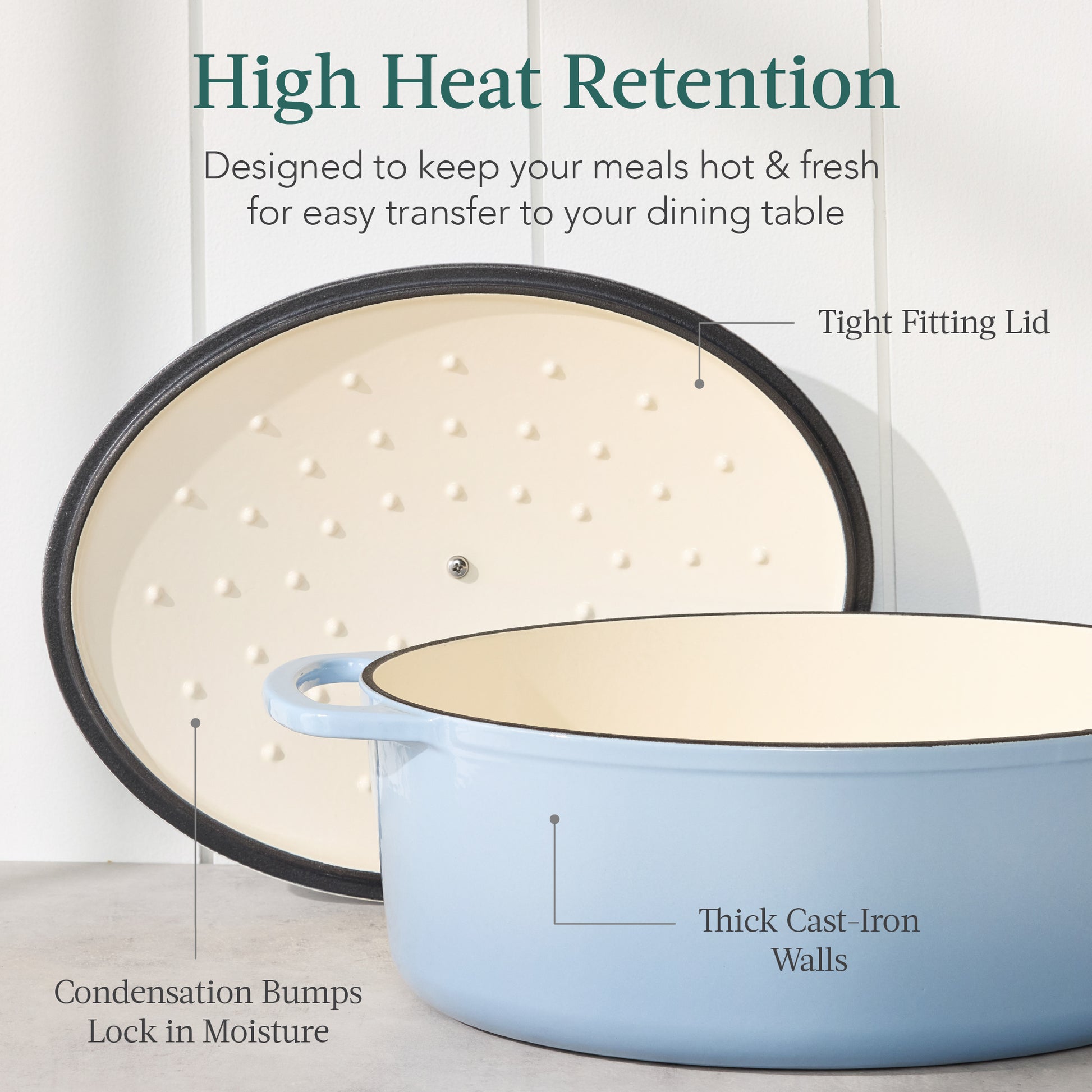 Oval Cast-Iron Dutch Oven Kitchen Cookware w/ Enamel - 7.5qt