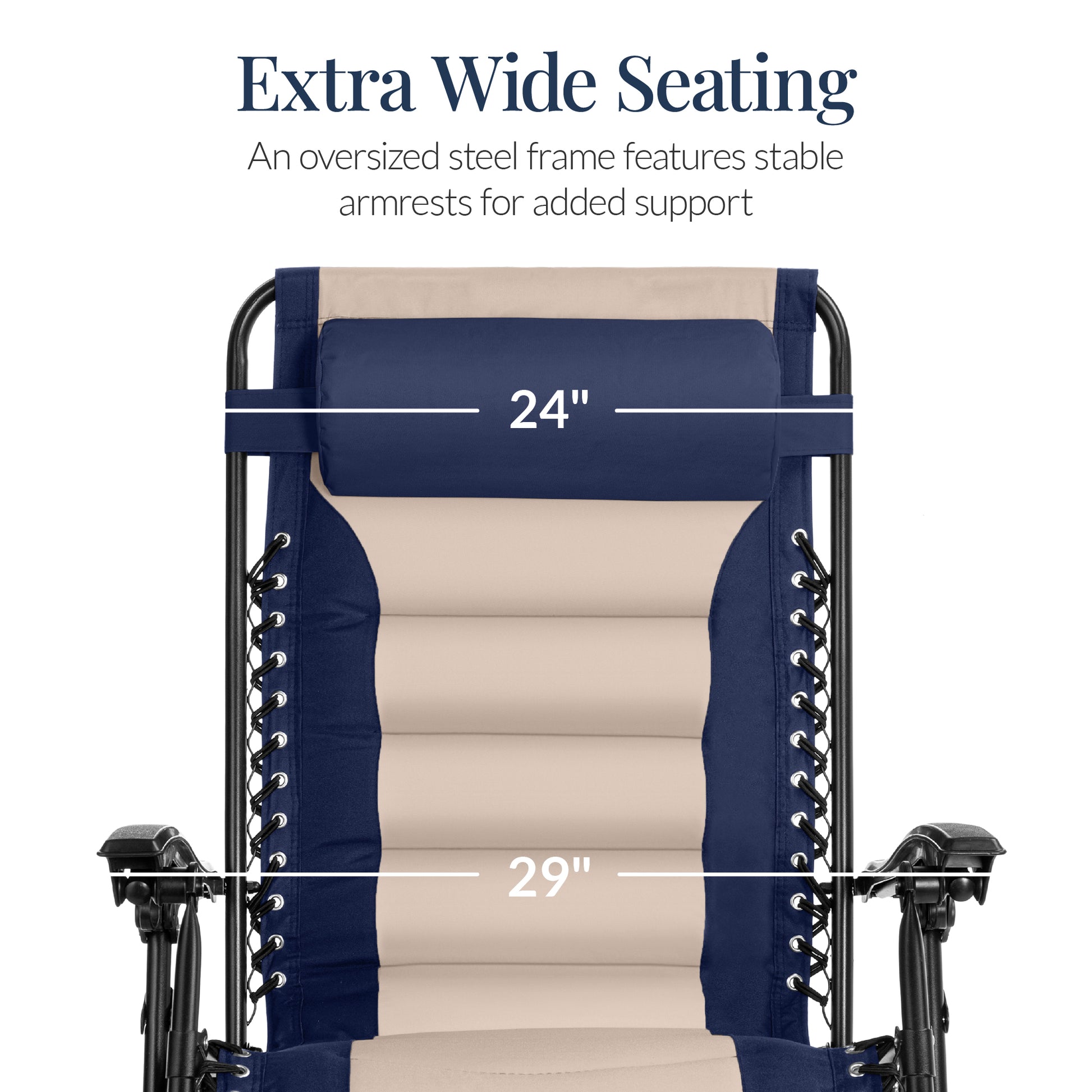 Oversized Padded Zero Gravity Chair, Folding Recliner w/ Headrest, Side Tray