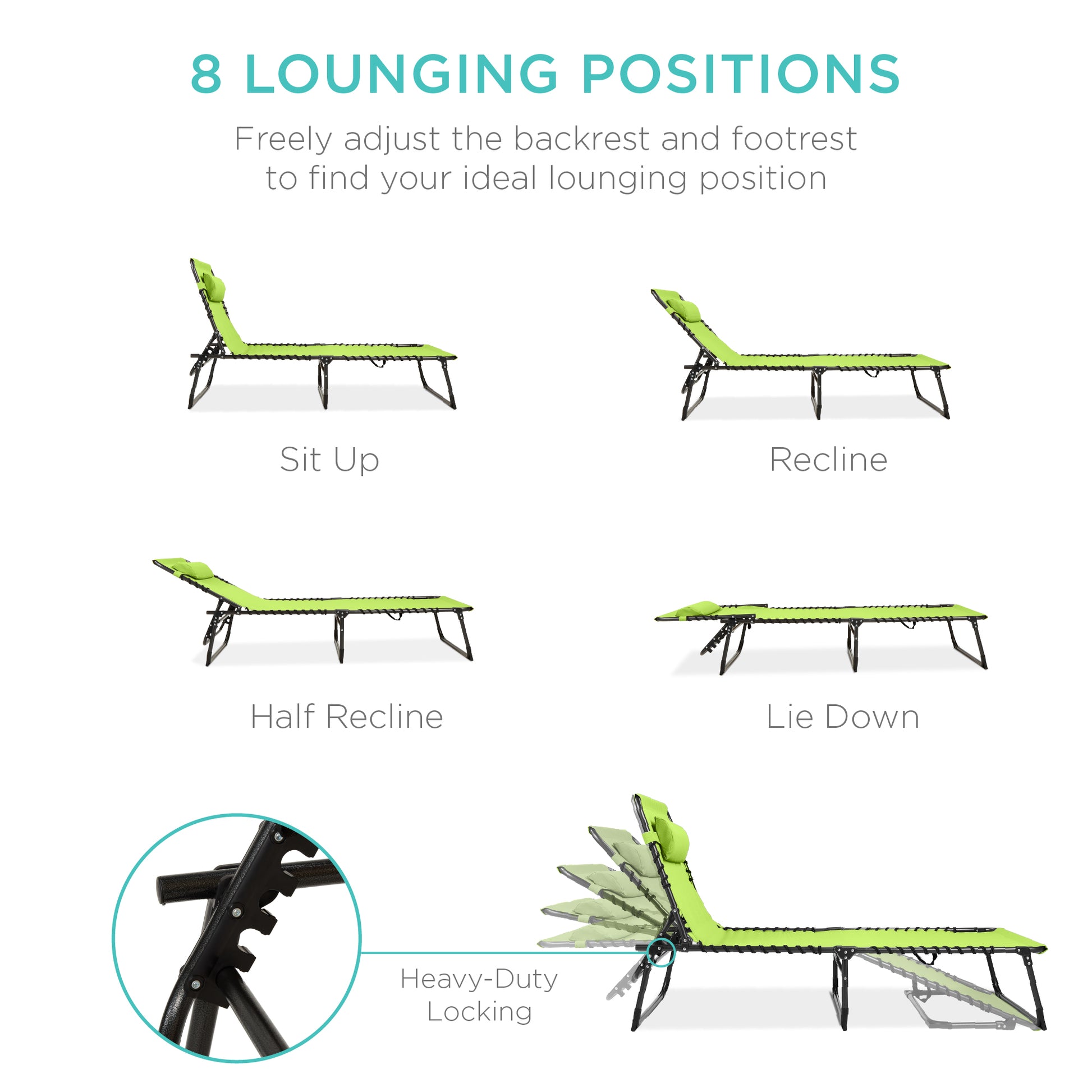 - 8 LOUNGING POSITIONS: A simple lock and release system lets you freely adjust the backrest and footrest between eight comfortable lounging positions