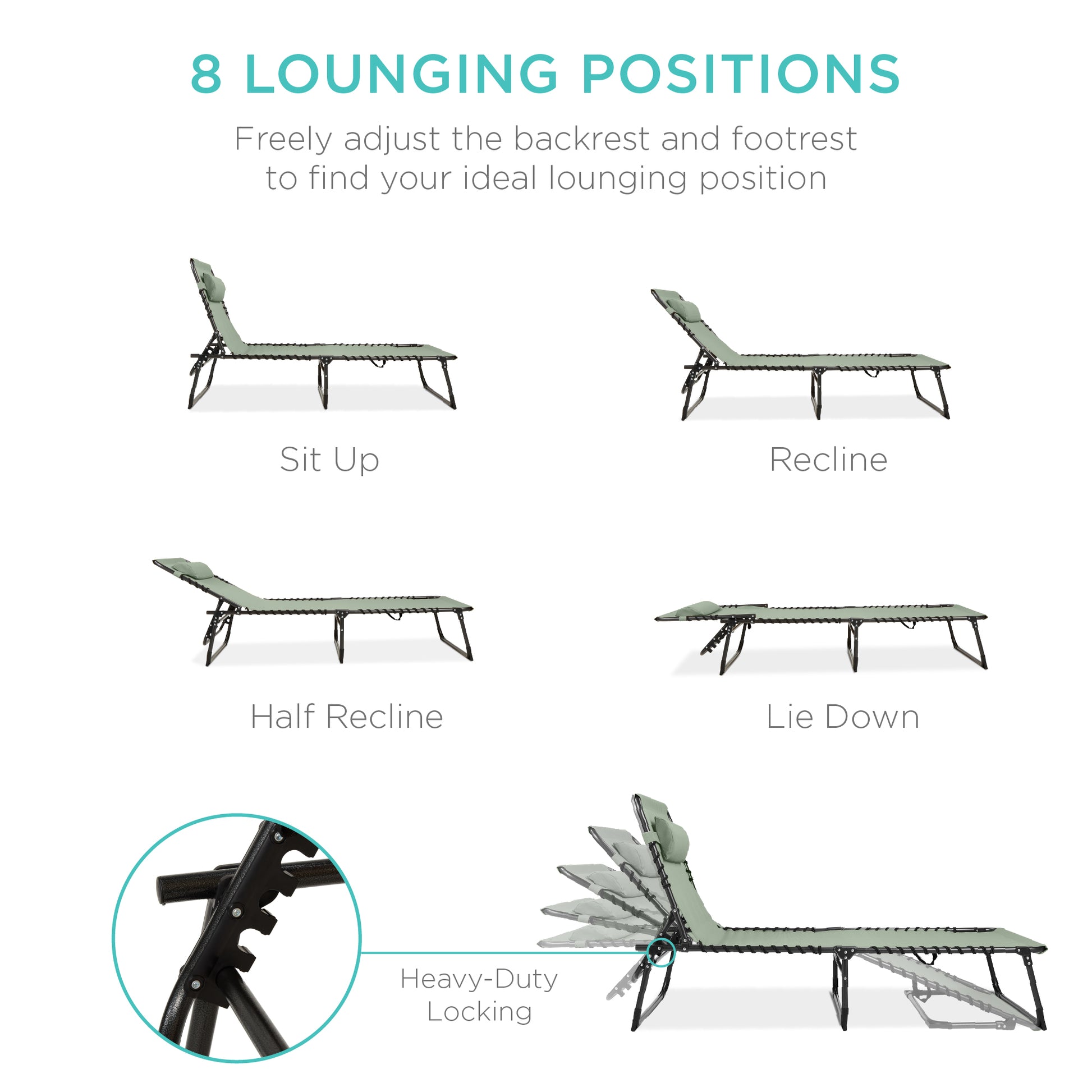 Portable Patio Chaise Lounge Chair Outdoor Recliner w/ Pillow