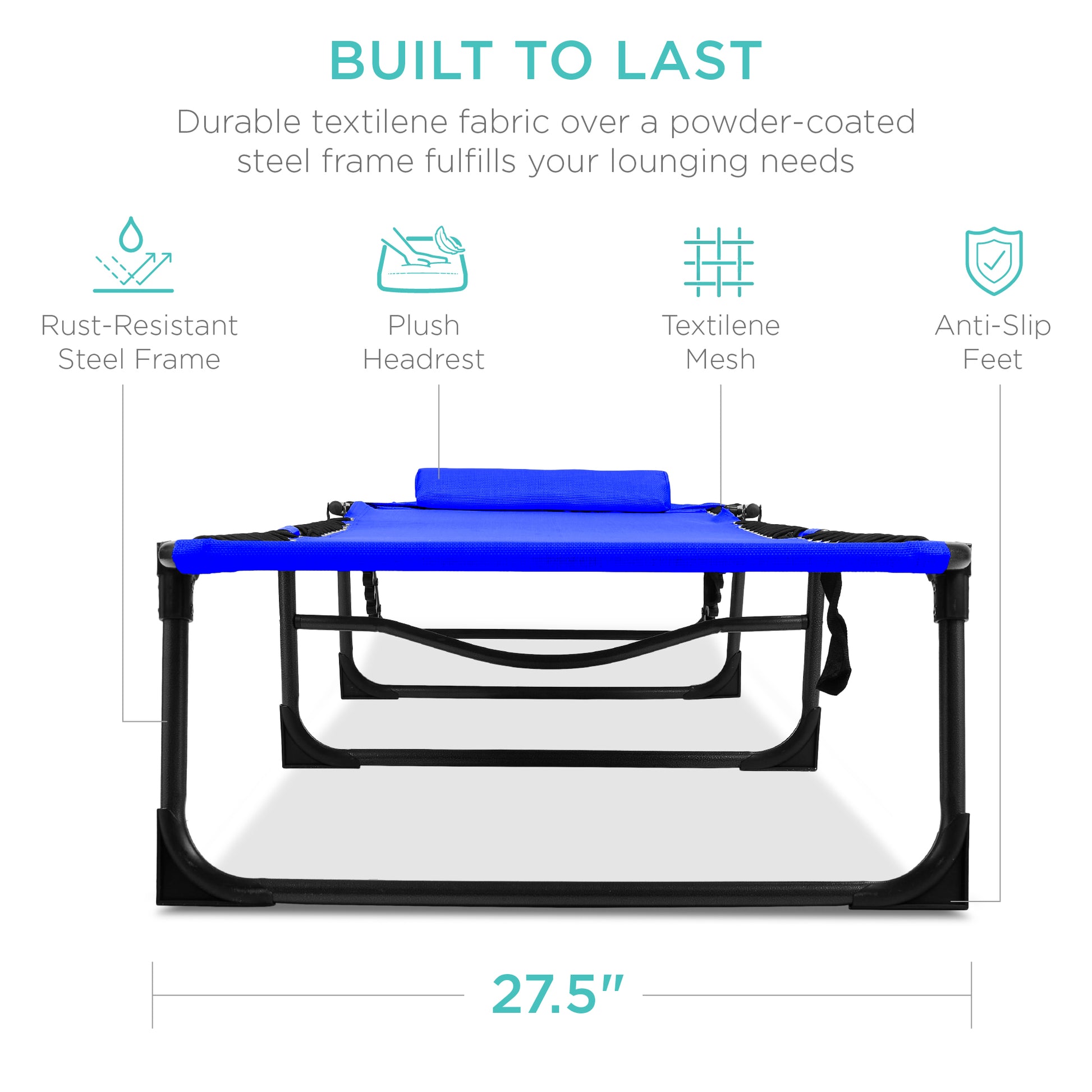 • BUILT TO LAST: Textilene fabric on a 71in powder-coated steel frame pairs with all non-slip feet for long-lasting oxidation- and weather-resistant quality