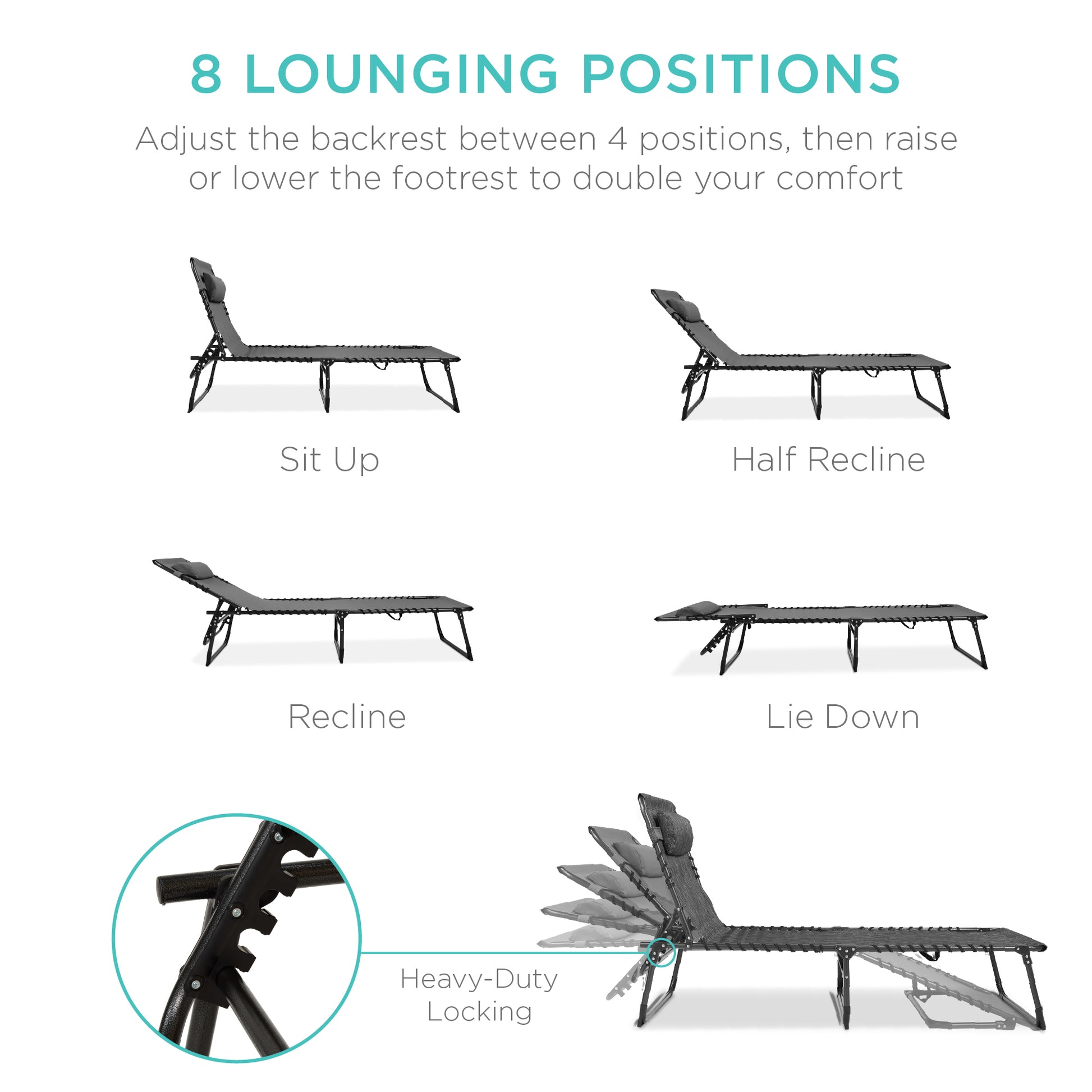 • 8 LOUNGING POSITIONS: A simple lock and release system lets you freely adjust the backrest and footrest between eight comfortable lounging positions