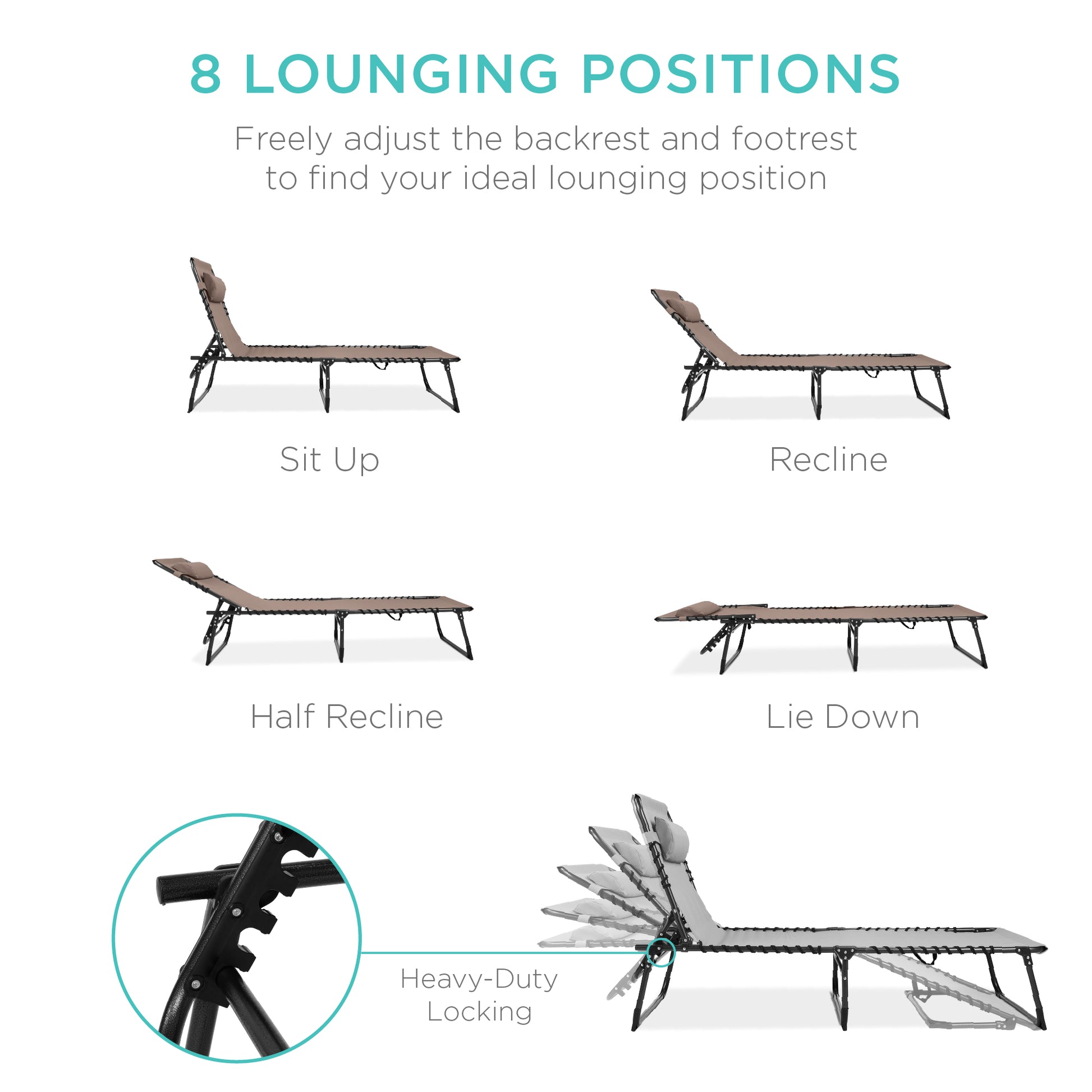 • 8 LOUNGING POSITIONS: A simple lock and release system lets you freely adjust the backrest and footrest between eight comfortable lounging positions