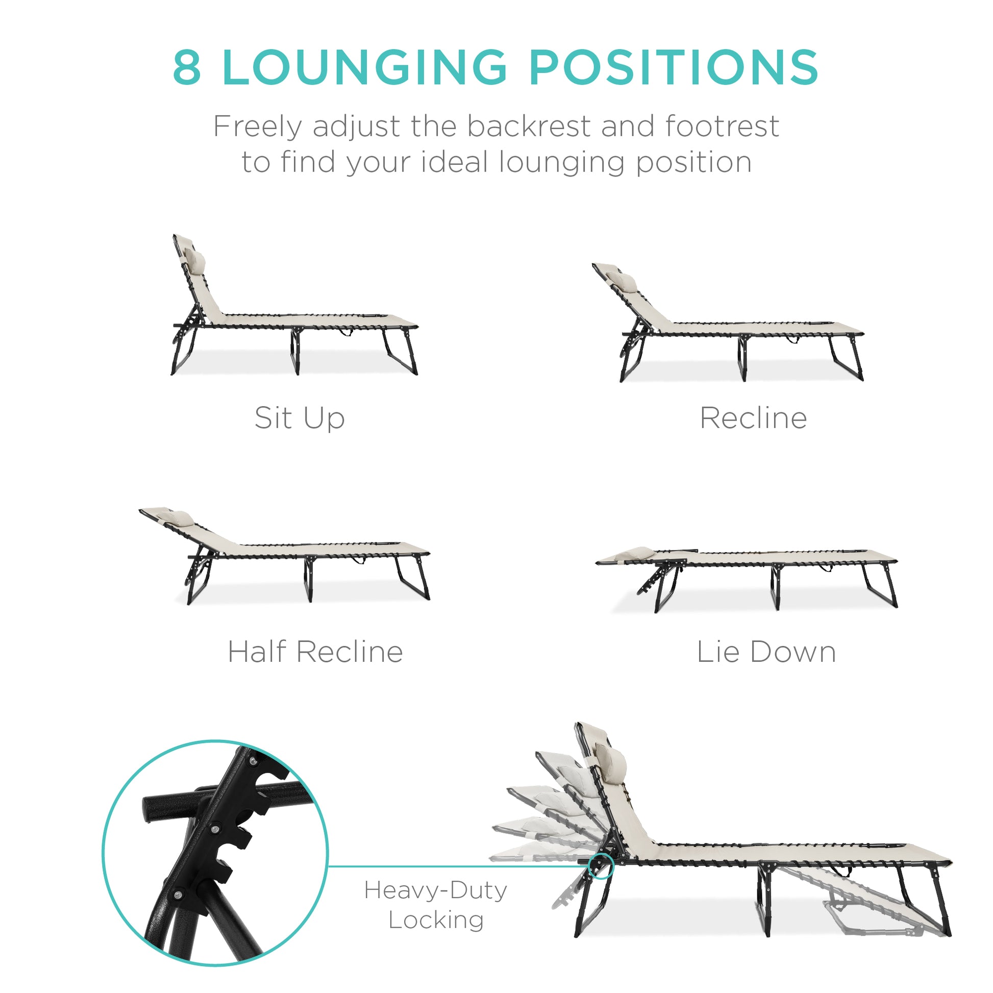 - 8 LOUNGING POSITIONS: A simple lock and release system lets you freely adjust the backrest and footrest between eight comfortable lounging positions