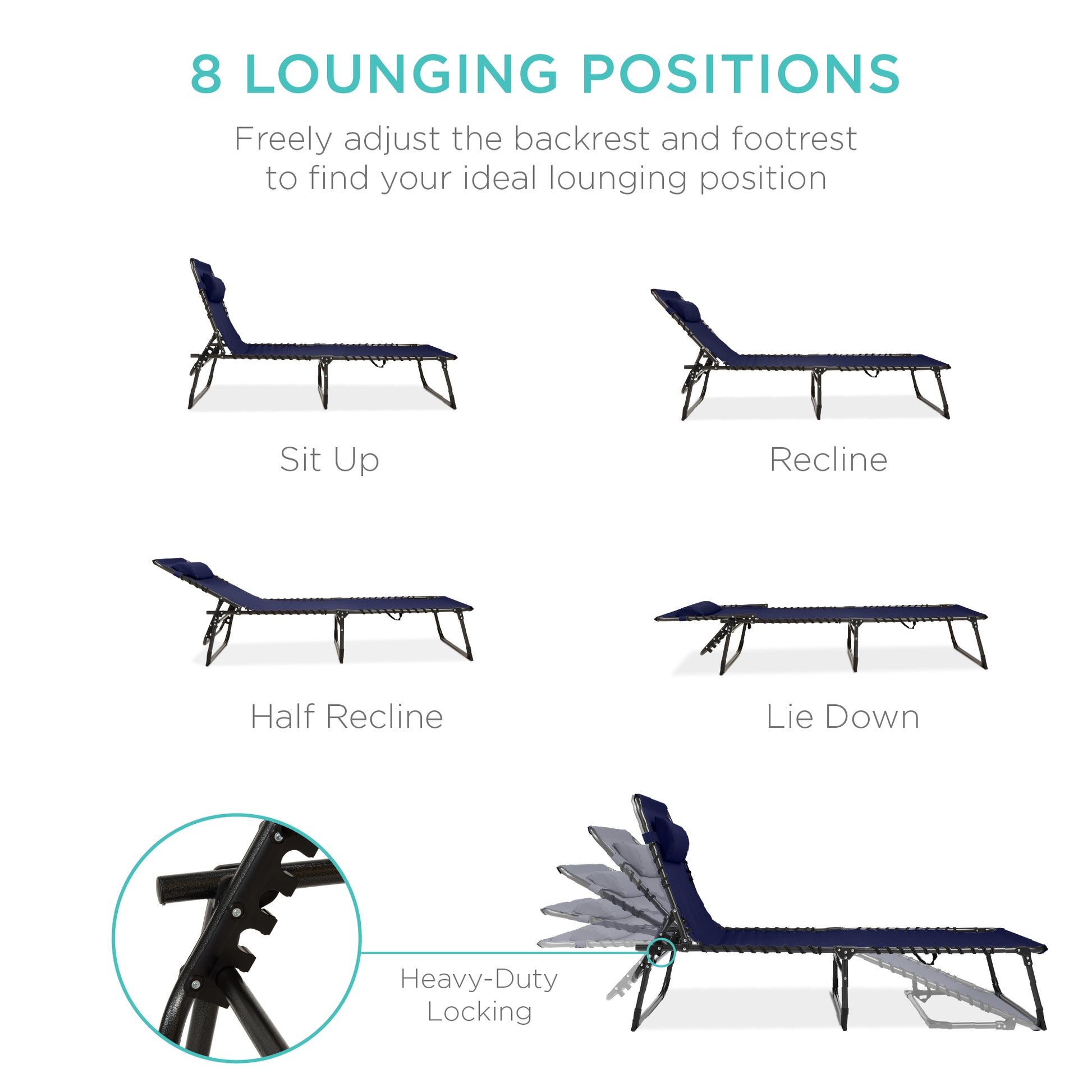 - 8 LOUNGING POSITIONS: A simple lock and release system lets you freely adjust the backrest and footrest between eight comfortable lounging positions