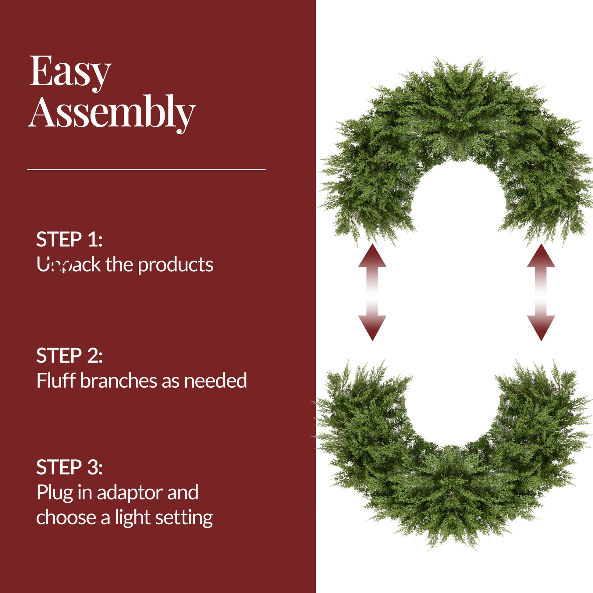 - PLUG-IN POWER: No need for batteries - our Christmas wreath features a convenient plug-in power source, ensuring continuous light throughout the holiday season.