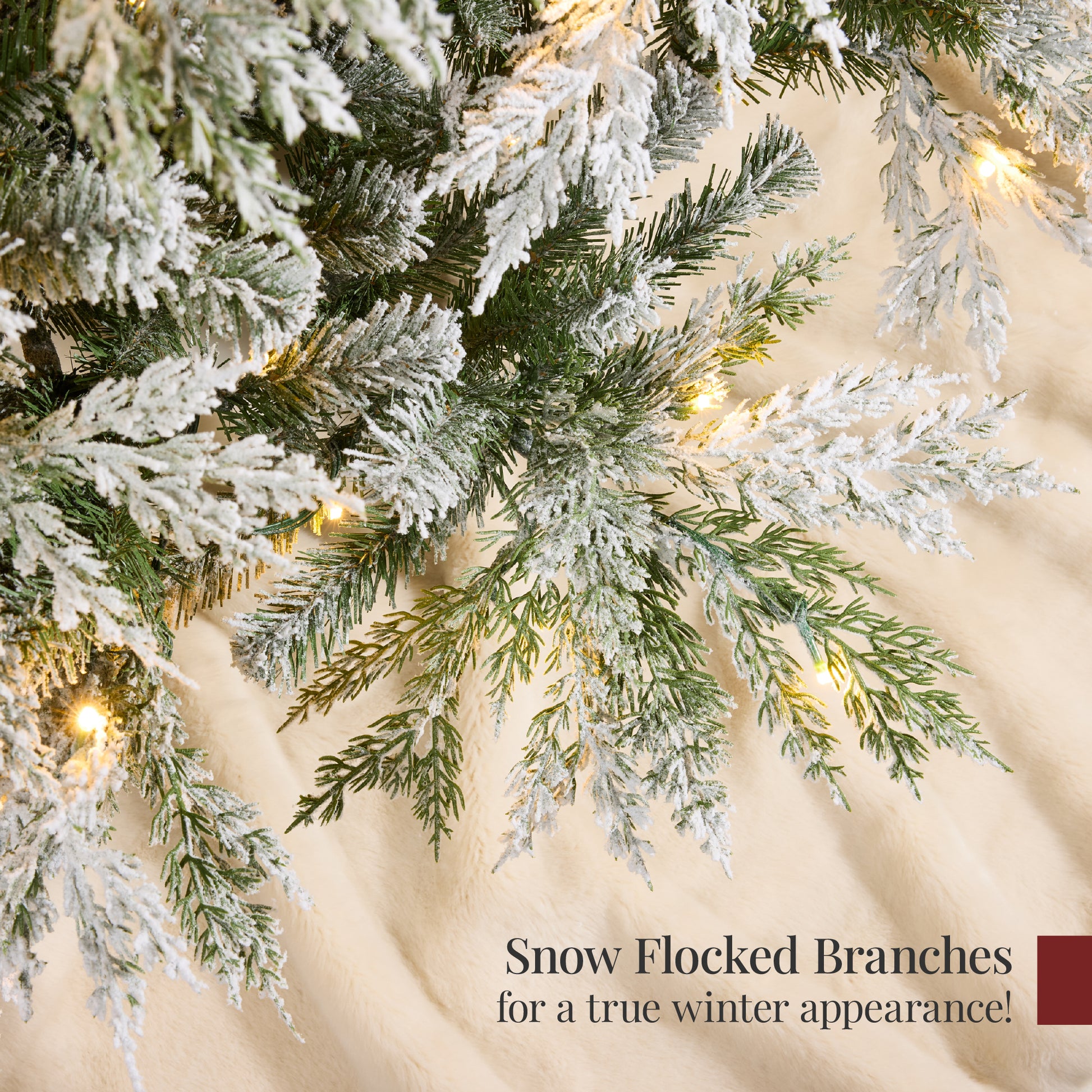 Pre-Lit Flocked Cedar Cypress Christmas Tree w/ Twinkling Lights