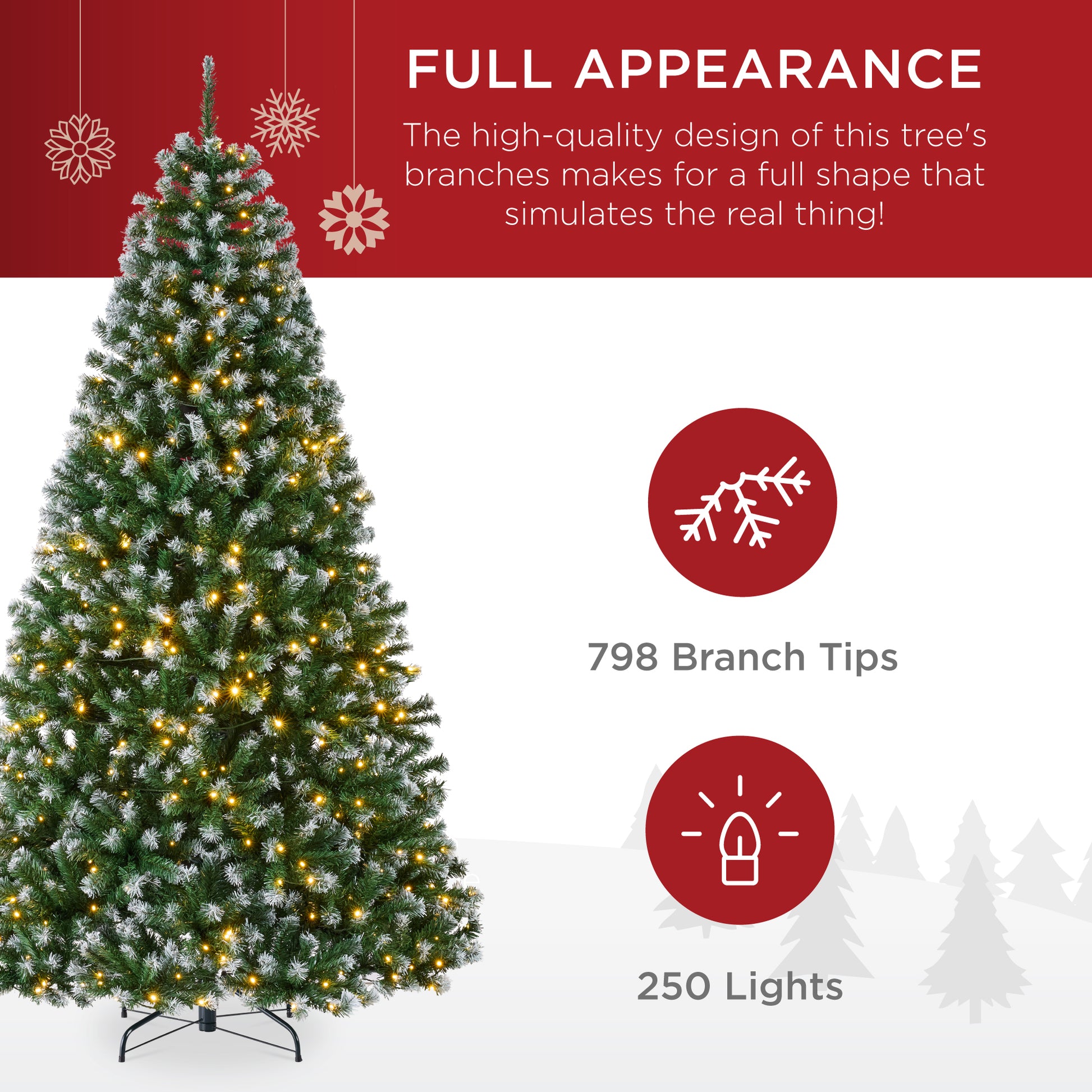 - Number of Lights (4.5ft/6ft/7.5ft/9ft/12ft/15ft): 200/250/550/900/1,300/1,800