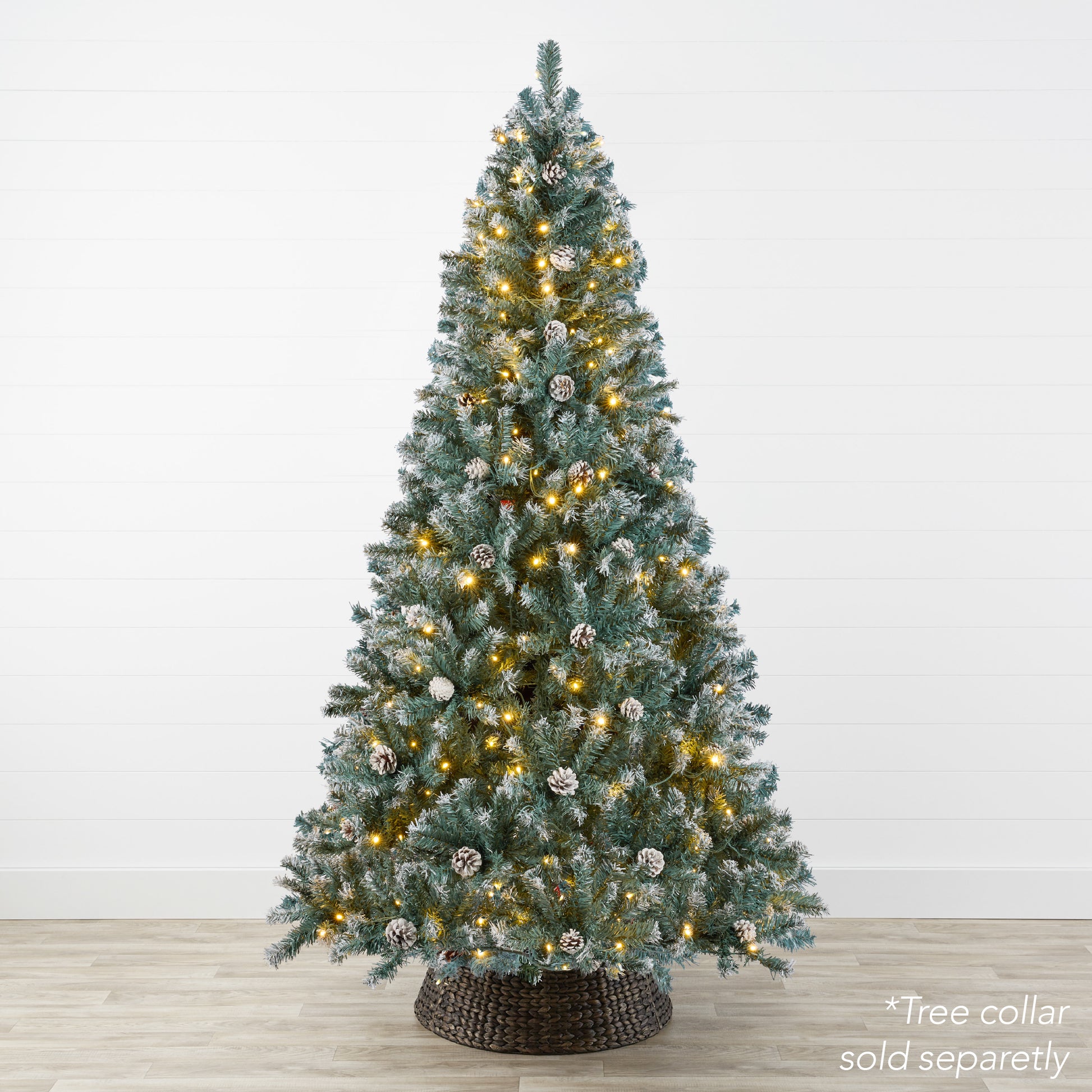 - PRE-DECORATED DESIGN: Made with 250, 550, and 850 LED lights (based on tree size), with pinecones that are evenly dispersed throughout the tree's partially flocked branches to create a natural look that brings a feel of the outdoors into your space
