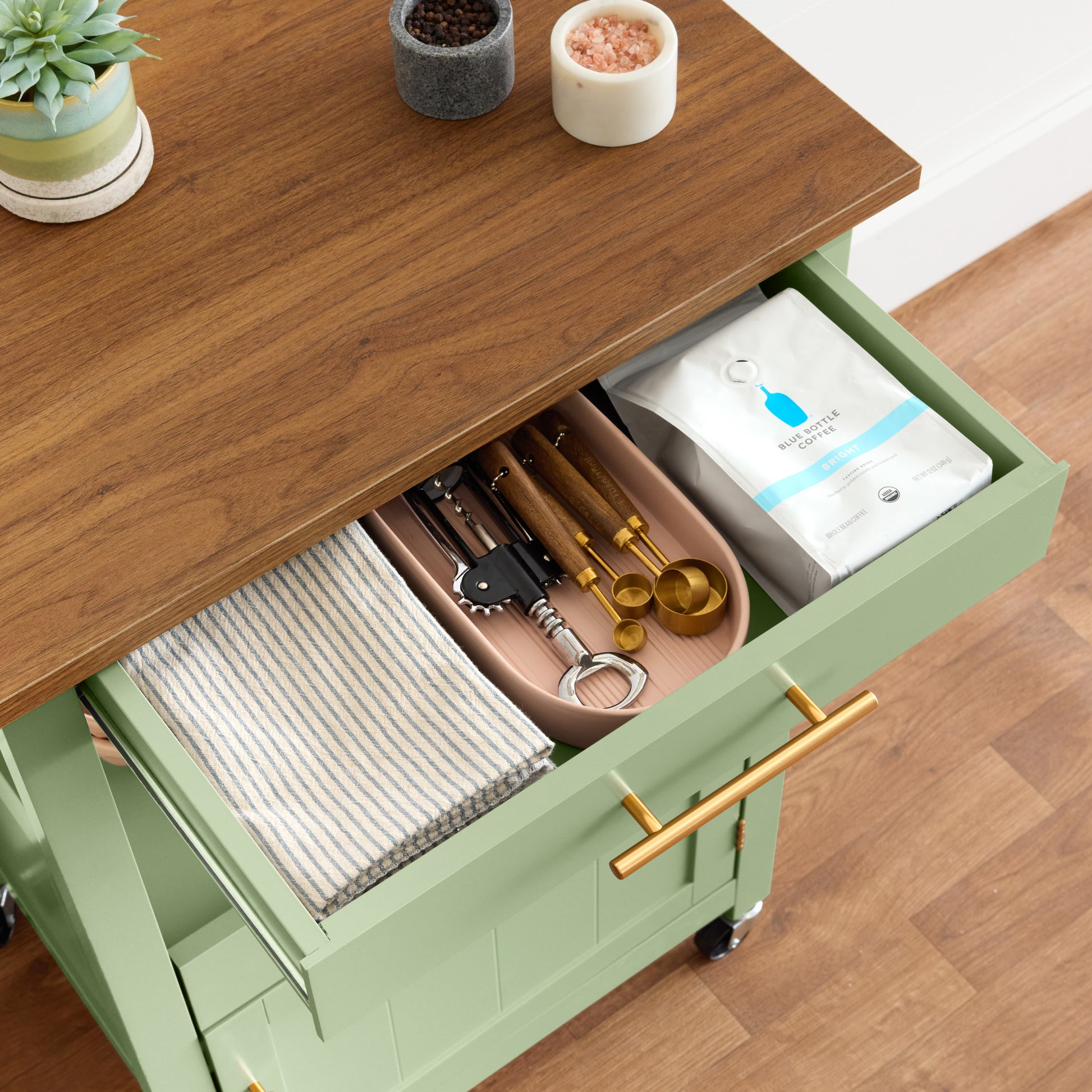 - AMPLE STORAGE: A spacious cabinet, shelf, and convenient drawer help you stay organized and keep your kitchen essentials in arm's reach