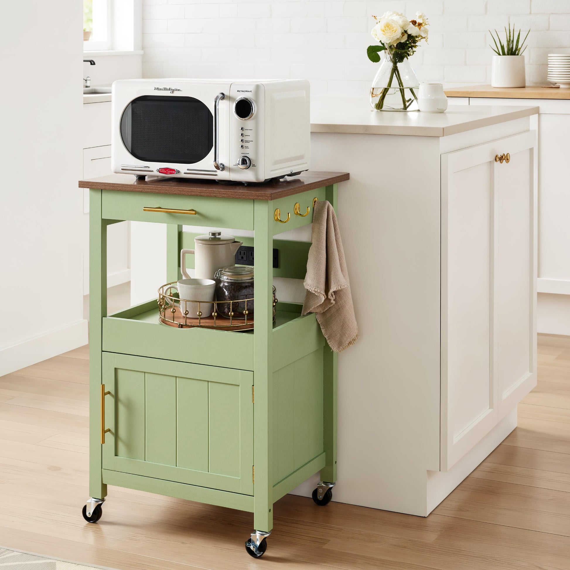 Rolling Kitchen Island Cart, Cabinet W/ Drawer, Sliding Tray, Outlet, Wheels