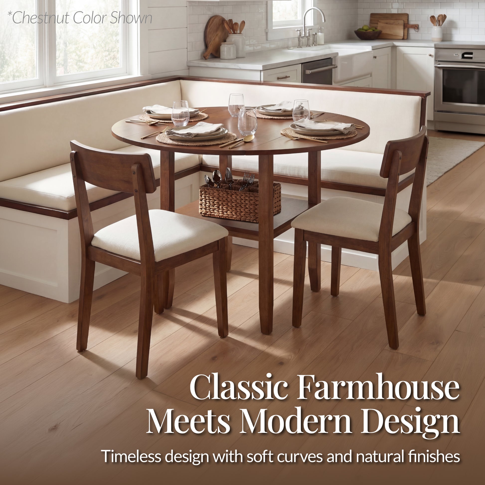 • REAL WOOD CONSTRUCTION: Solid wood 42" dining table crafted with a strong base and lower storage stability for everyday dining and entertaining