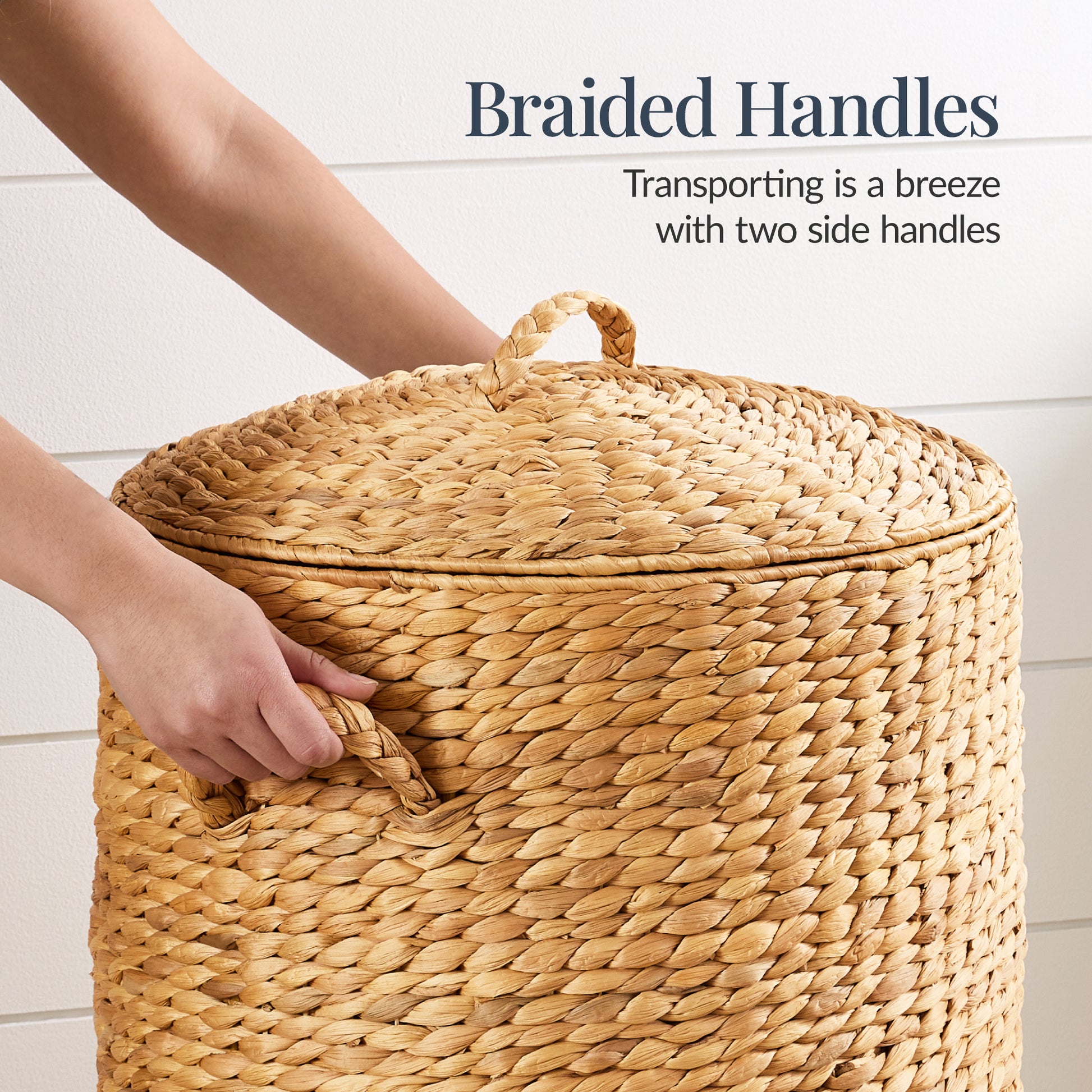 • BRAIDED HANDLES: Strong woven handles on the sides and lid make it easy to lift, carry, and access your laundry or storage items with comfort and convenience